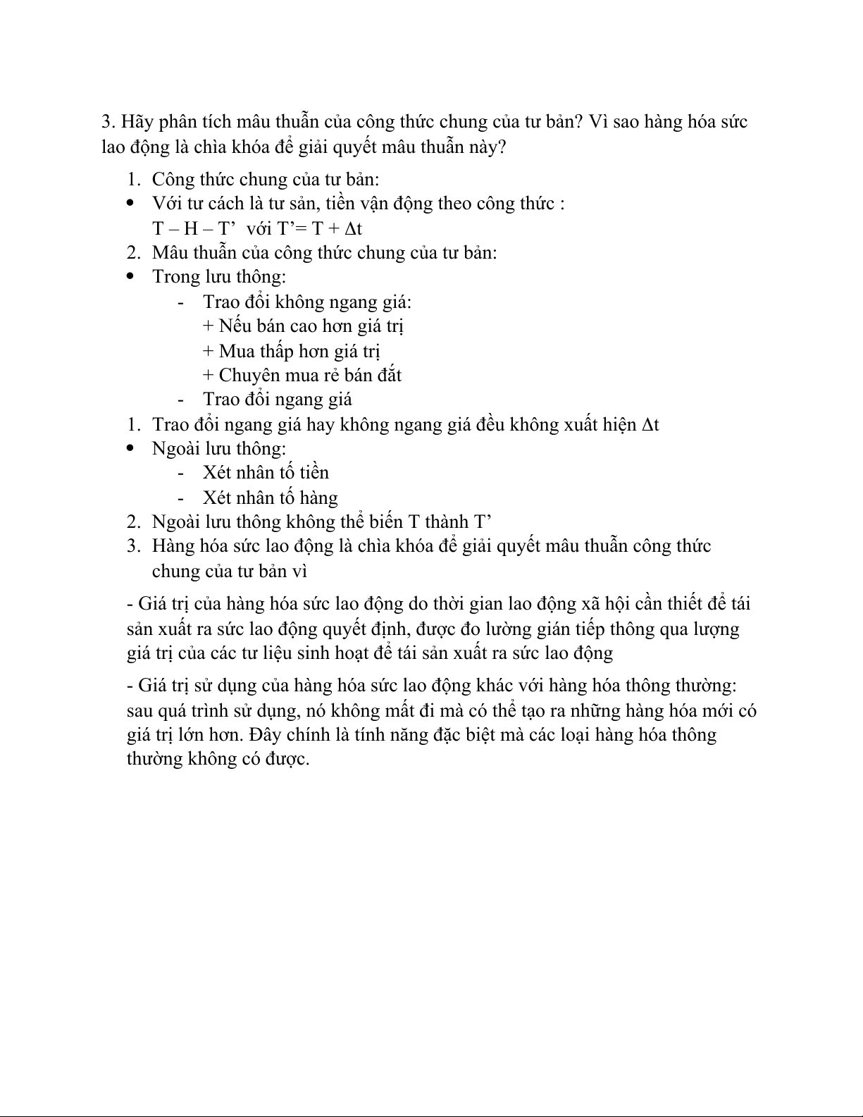 3. Hãy phân tích mâu thuẫn của công thức chung của tư bản? Vì sao hàng hóa sức