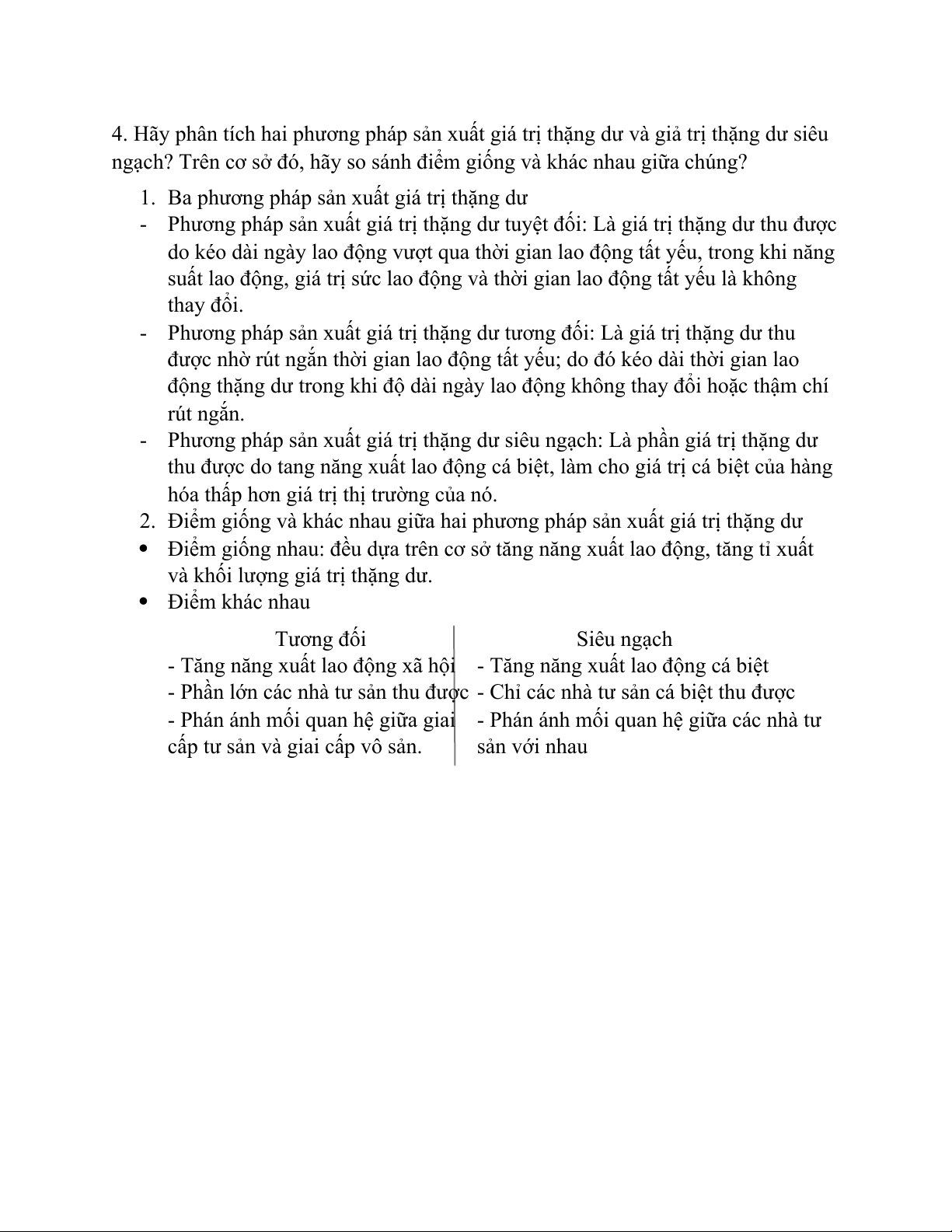 4. Hãy phân tích hai phương pháp sản xuất giá trị thặng dư và giả trị thặng dư siêu