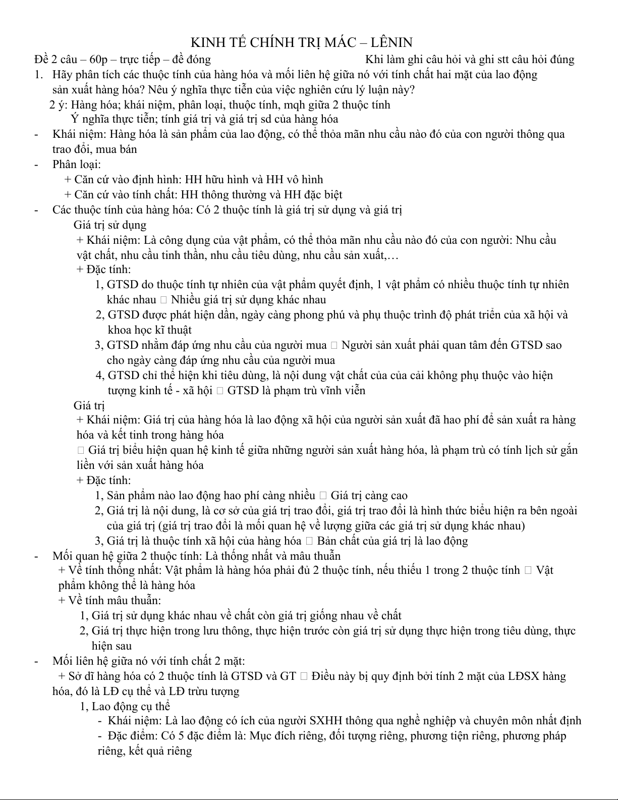 1. Hãy phân tích các thuộc tính của hàng hóa và mối liên hệ giữa nó với tính chất hai mặt của lao động