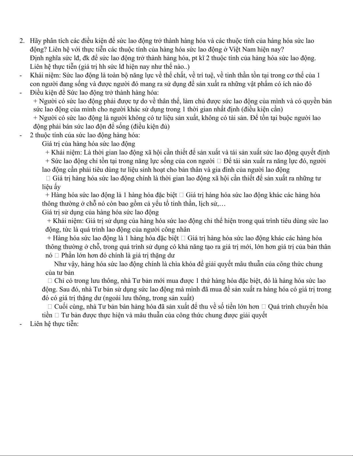 2. Hãy phân tích các điều kiện để sức lao động trở thành hàng hóa và các thuộc tính của hàng hóa sức lao