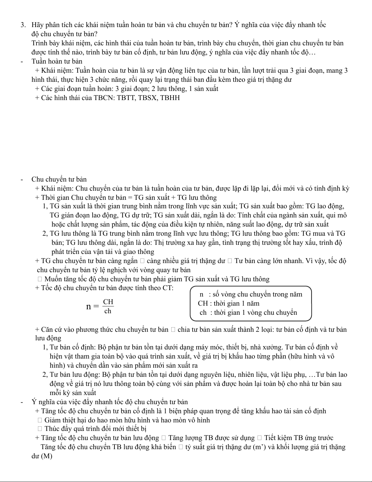 3. Hãy phân tích các khái niệm tuần hoàn tư bản và chu chuyển tư bản? Ý nghĩa của việc đẩy nhanh tốc độ chu chuyển tư bản?