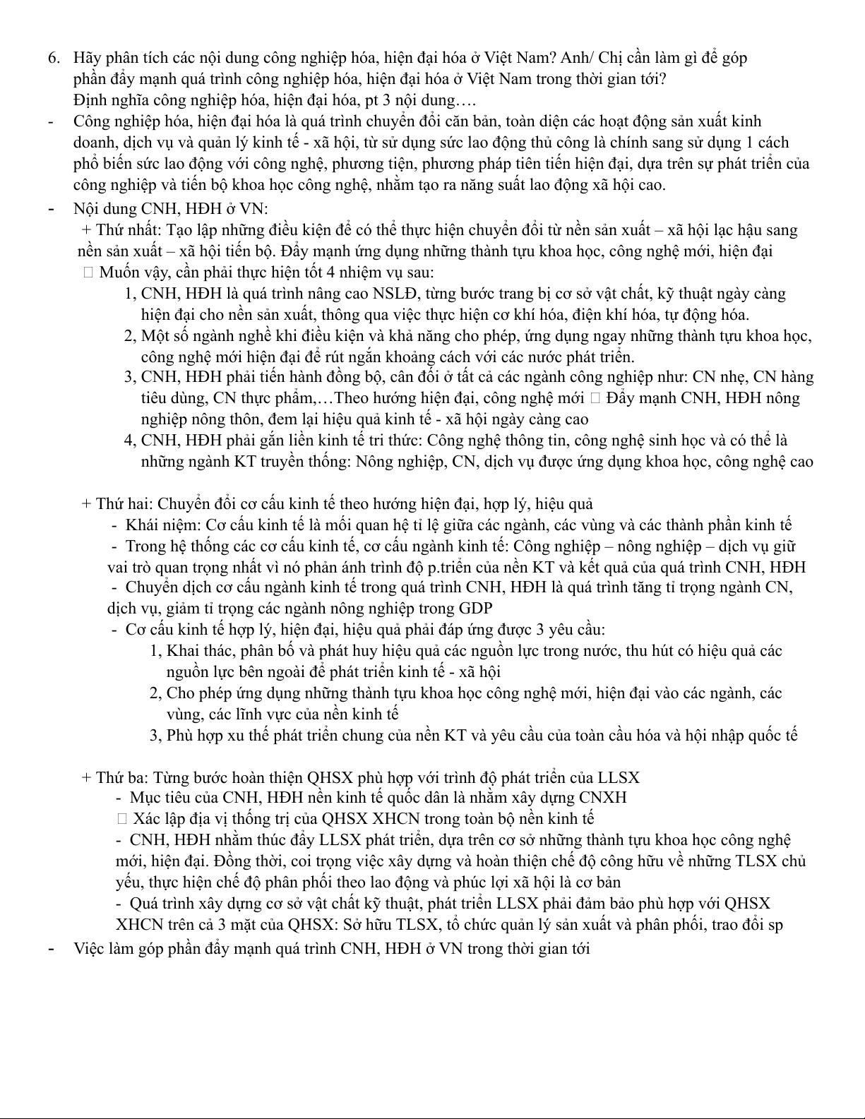 6. Hãy phân tích các nội dung công nghiệp hóa, hiện đại hóa ở Việt Nam? Anh/ Chị cần làm gì để góp