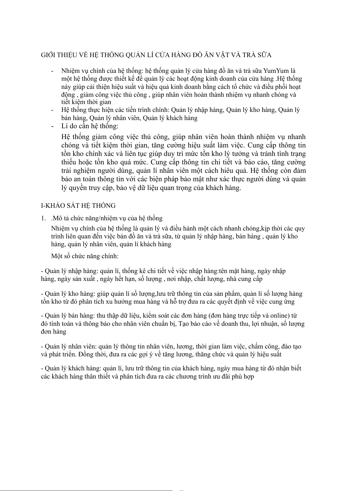 Nhiệm vụ chính của hệ thống: hệ thống quản lý cửa hàng đồ ăn và trà sữa YumYum là