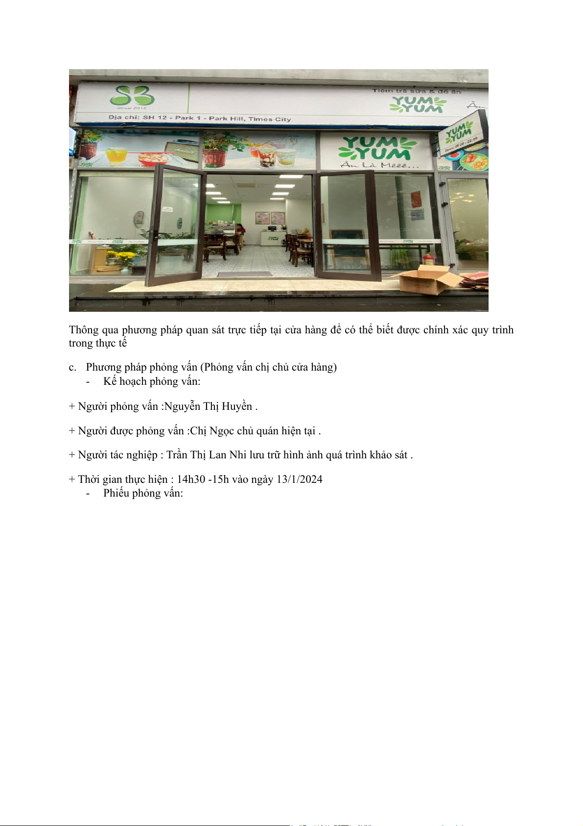 c. Phương pháp phỏng vấn (Phỏng vấn chị chủ cửa hàng) - Kế hoạch phỏng vấn: