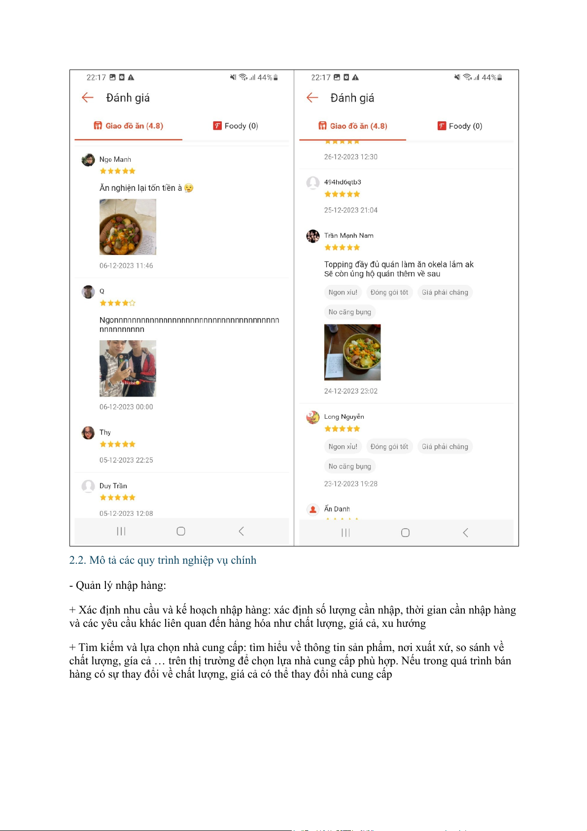 2.2. Mô tả các quy trình nghiệp vụ chính - Quản lý nhập hàng: