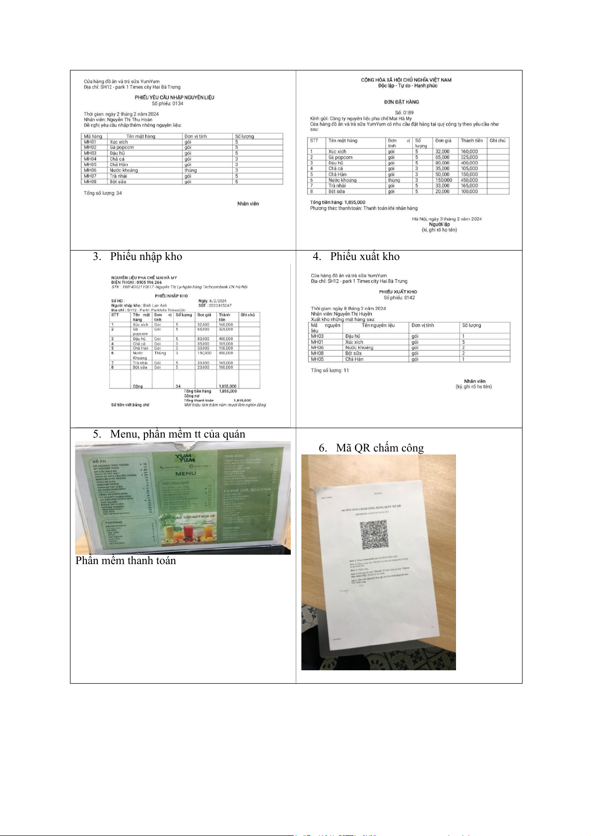 2. Phiếu yêu cầu nhập nguyên liệu 3. Phiếu đặt hàng 4. Phiếu nhập kho
