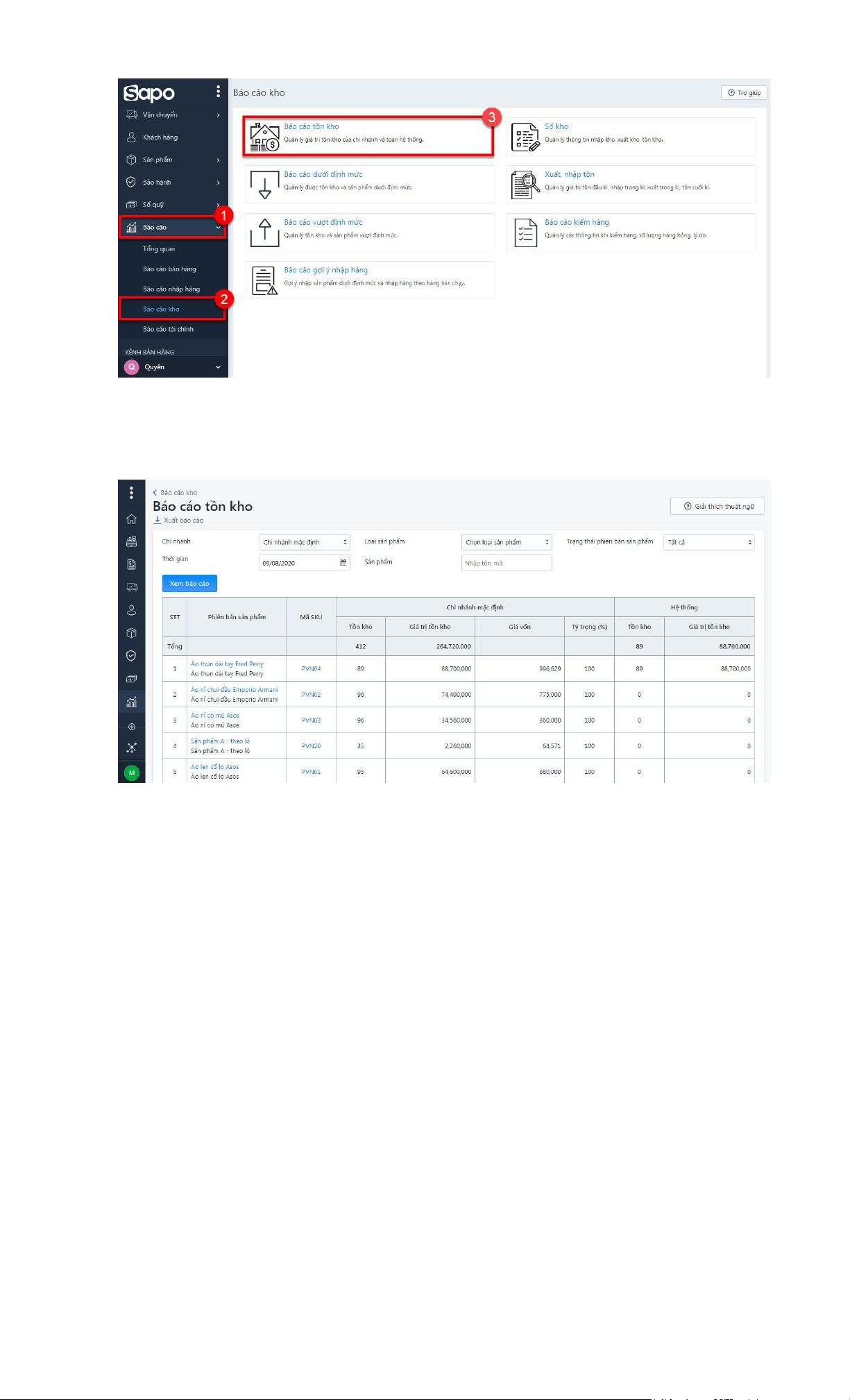 - Sapo cung cấp các công cụ thống kê và báo cáo để bạn có thể theo dõi hiệu suất kinh doanh,