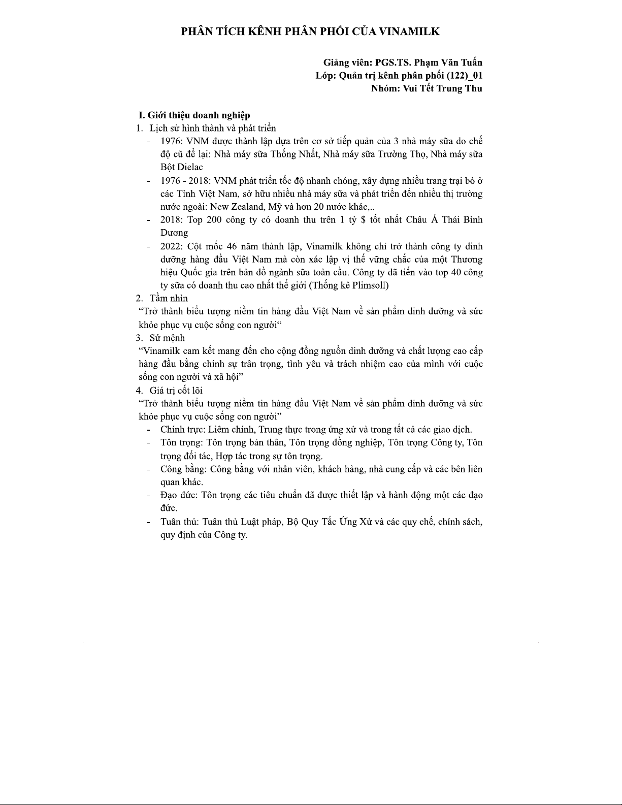 Phân Tích Kênh Phân Phối của Vinamilk - Nhóm 5 (QLKPP 122)