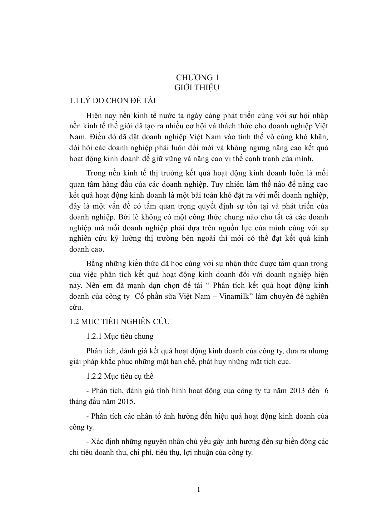 doanh của công ty Cổ phần sữa Việt Nam – Vinamilk” làm chuyên đề nghiên cứu. 1.2 MỤC TIÊU NGHIÊN CỨU 1.2.1 Mục tiêu chung