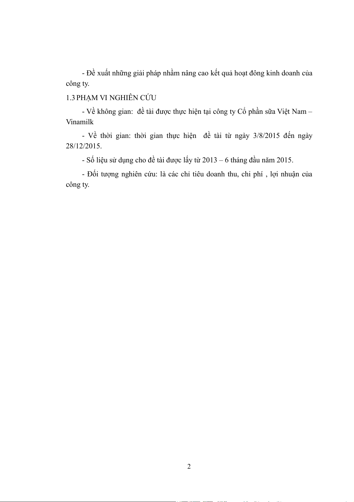 - Về không gian: đề tài được thực hiện tại công ty Cổ phần sữa Việt Nam – Vinamilk