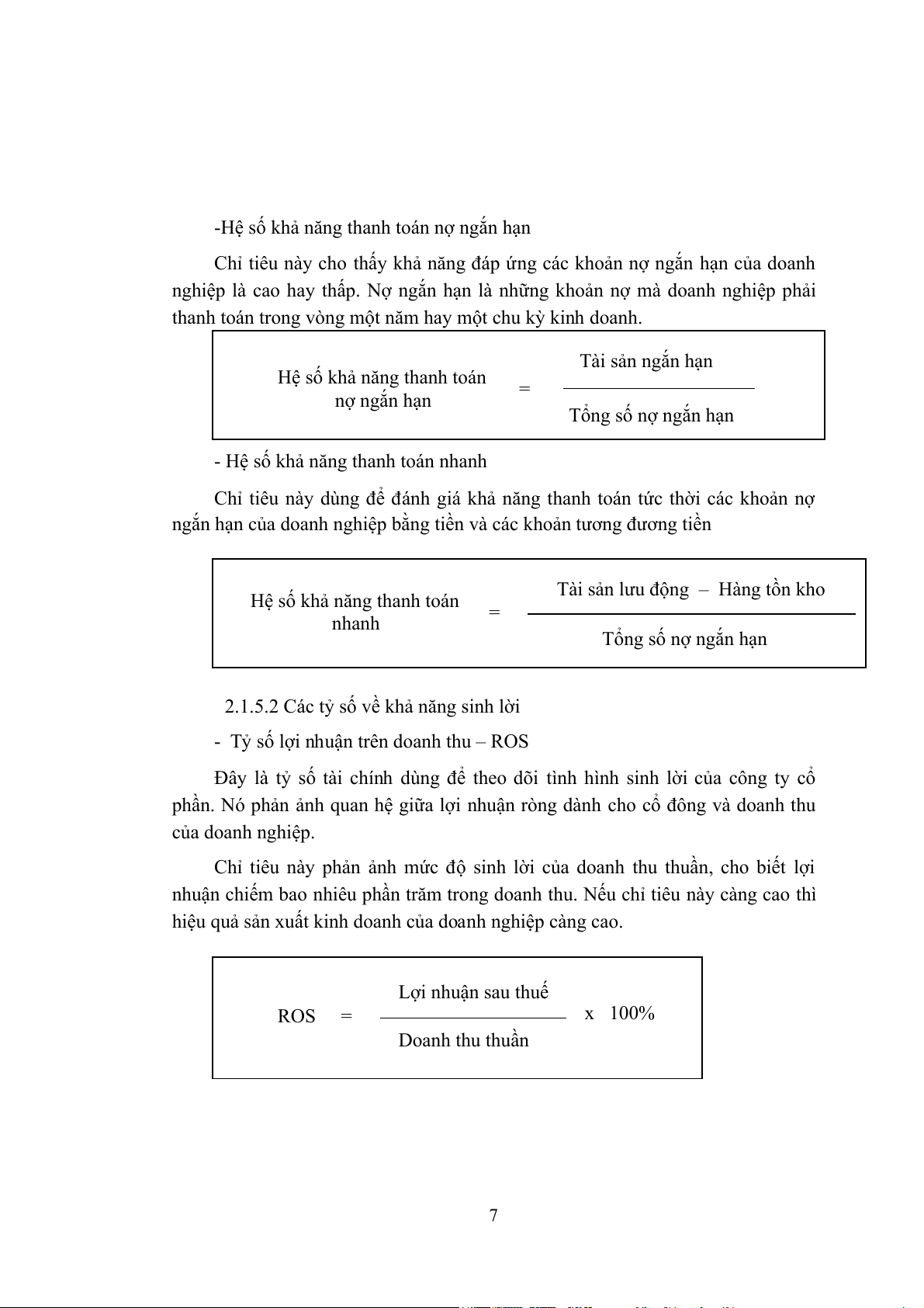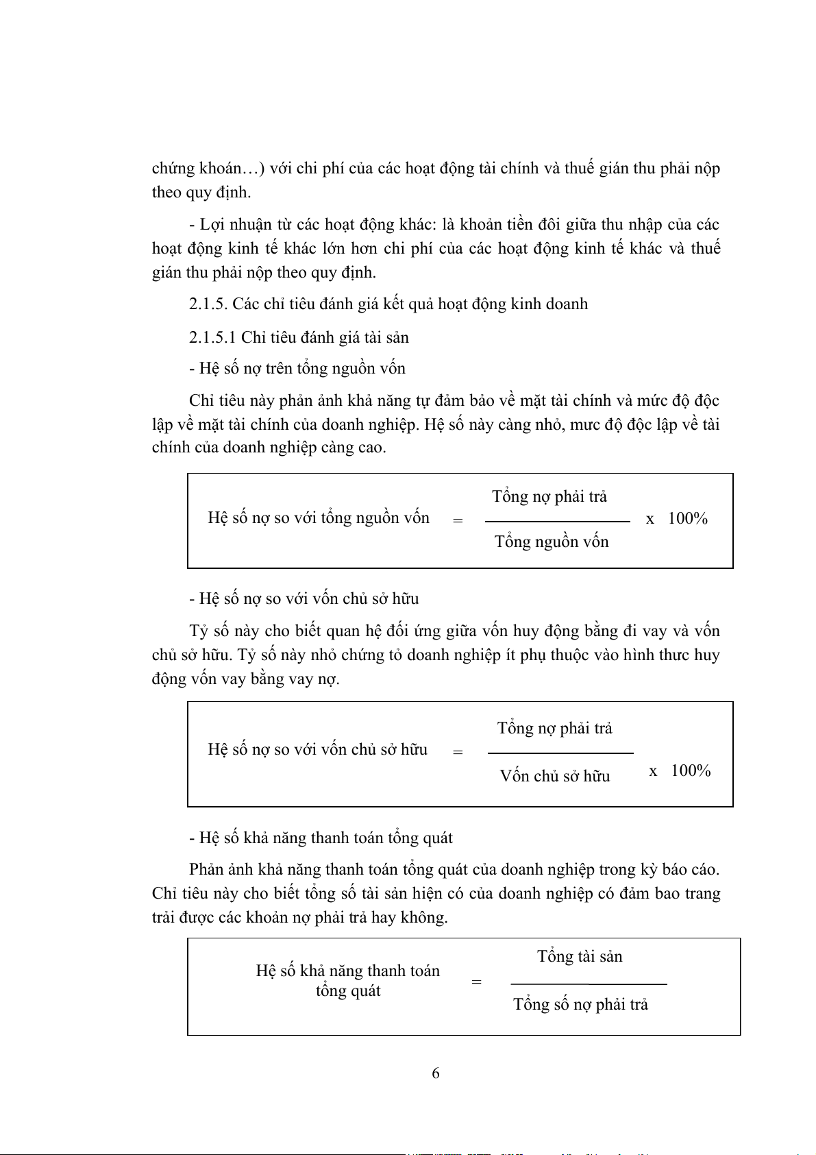- Chỉ tiêu về khả năng thanh toán: các hệ số về khả năng thanh toán không