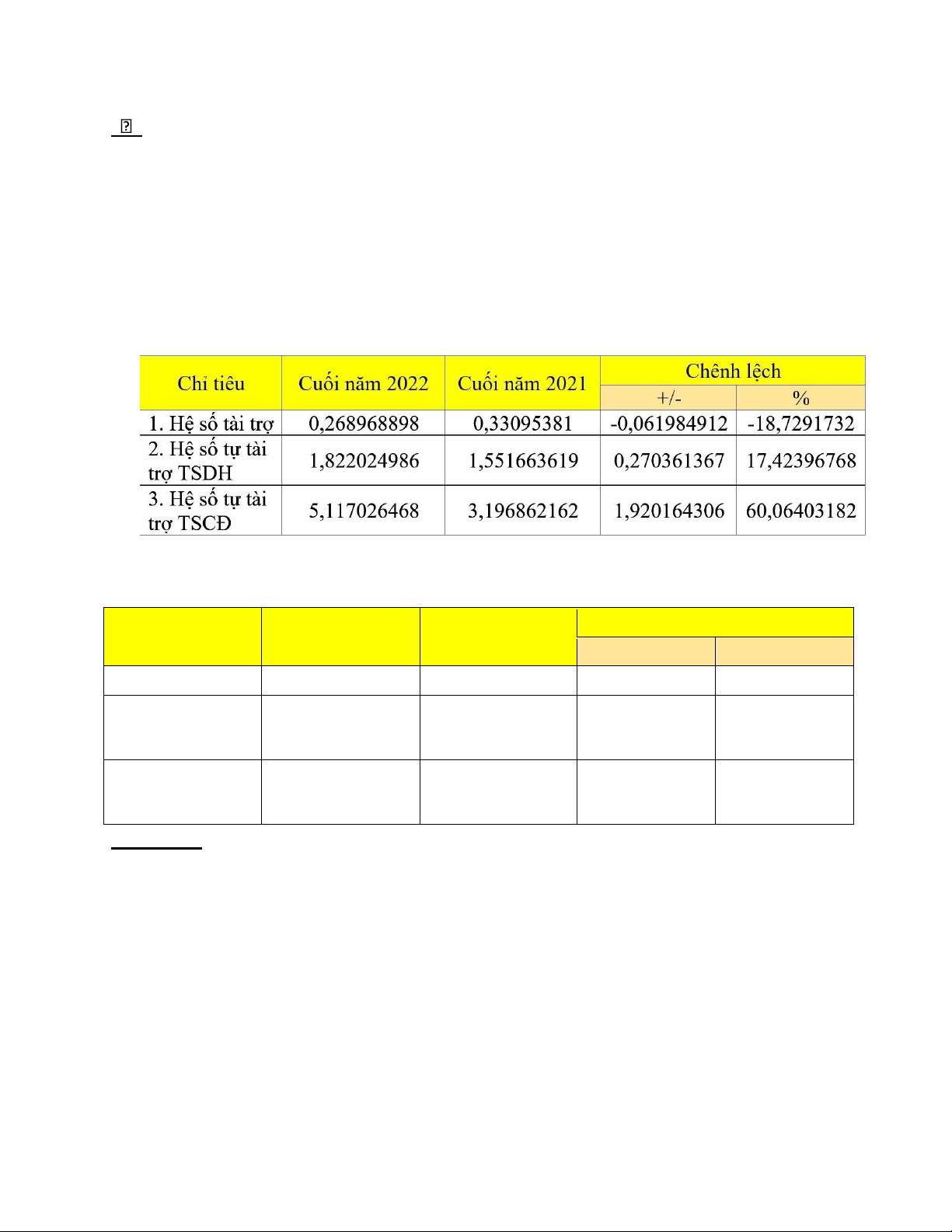 CỦA TỔNG CÔNG TY CỔ PHẦN CÔNG TRÌNH VIETTEL Chỉ tiêu Cuối năm Cuối năm Chênh lệch 2022 2021 +/-