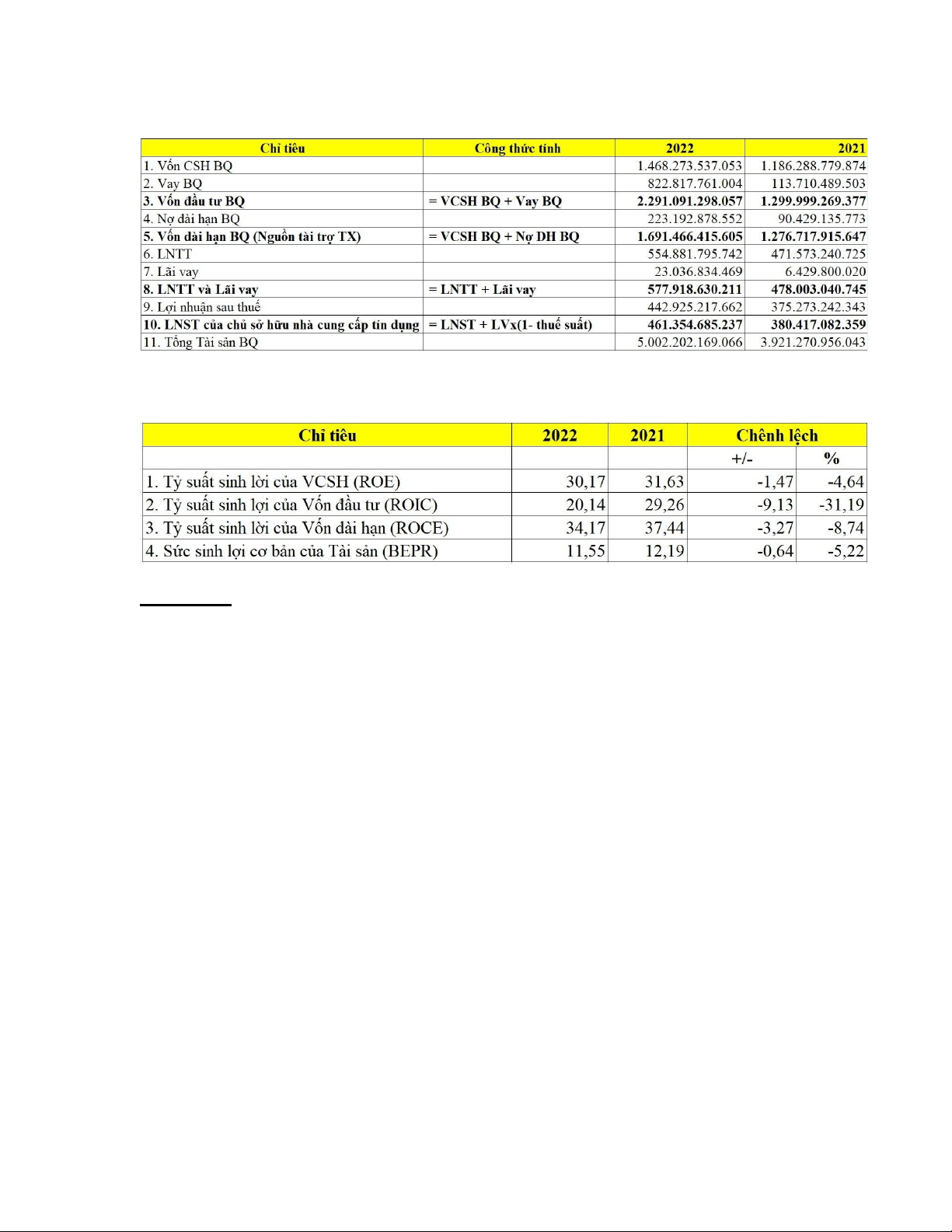 lợi. ROIC của năm 2022 thấp hơn năm 2021 là 9,13%, tương ứng với tốc độ giảm