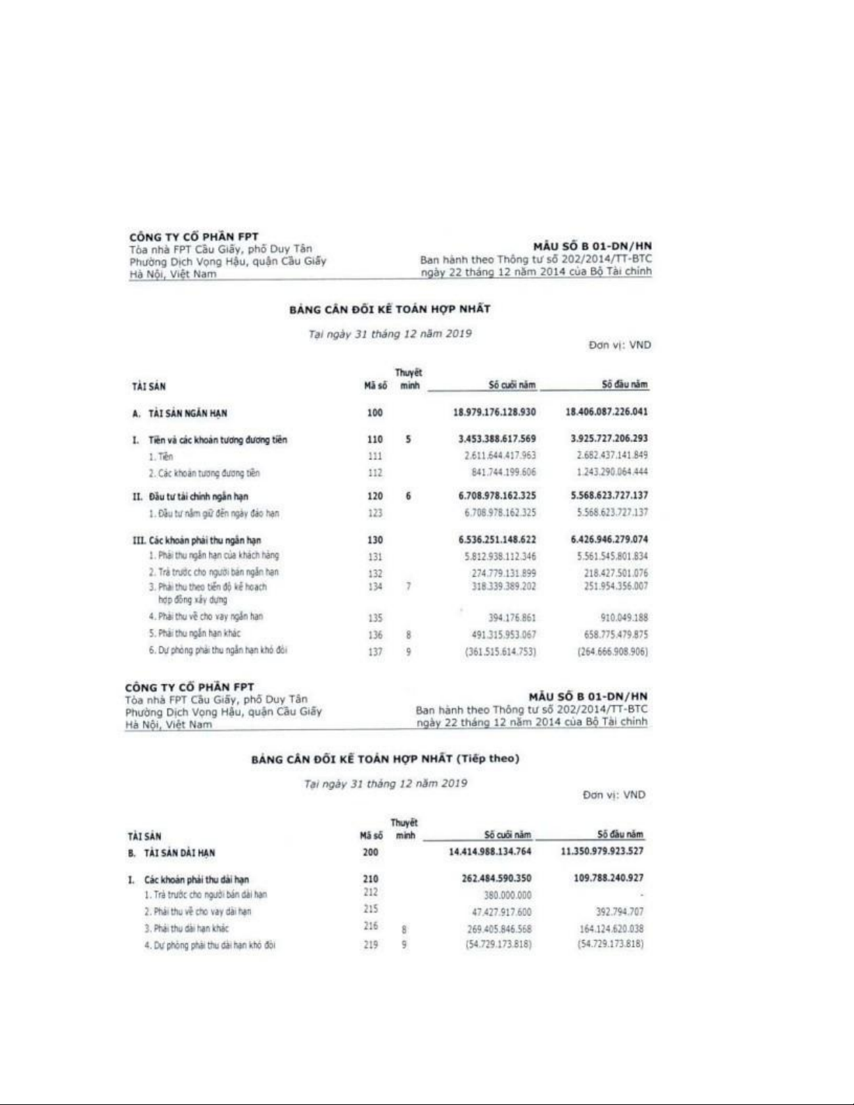(Nguồn: Báo cáo tài chính hợp nhất đã kiểm toán của FPT)