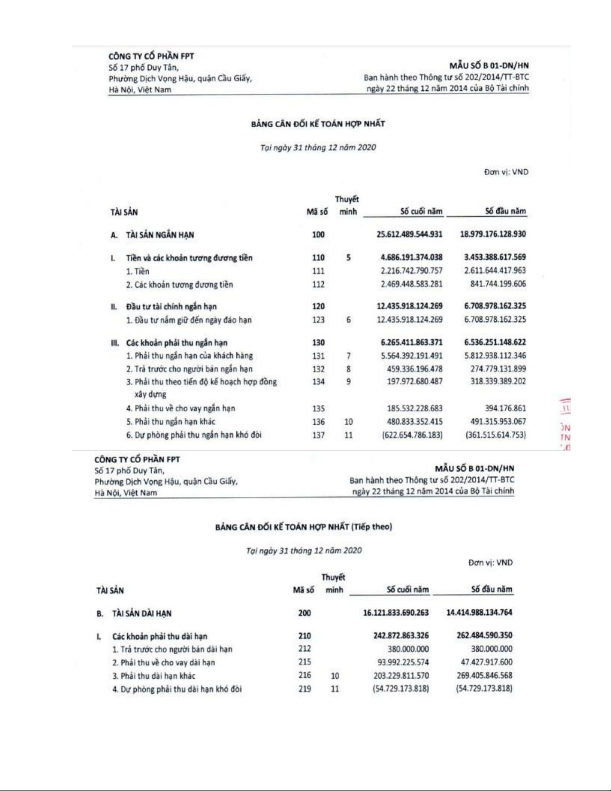 (Báo cáo tài chính Hợp nhất Kiểm toán năm 2020 – Tập đoàn FPT)