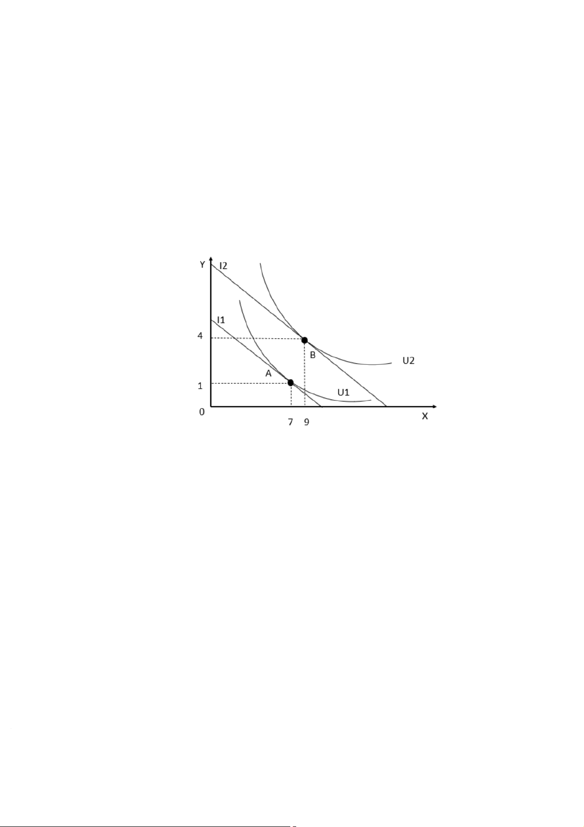Ta có hình của đường bàng quan và đường ngân sách như hình dưới đây: Theo hình vẽ: Ta có - Điểm A (9X,3Y) thuộc U3 - Điểm B (1X,7Y) thuộc U2 - Điểm C (7X,8Y) thuộc U1