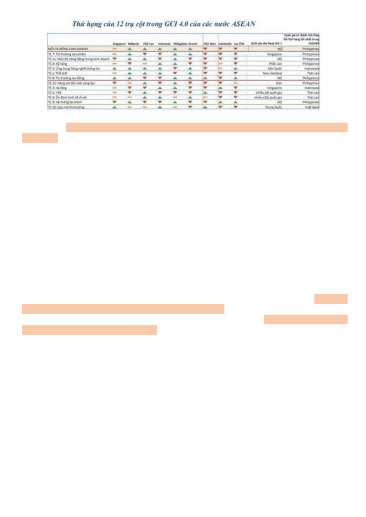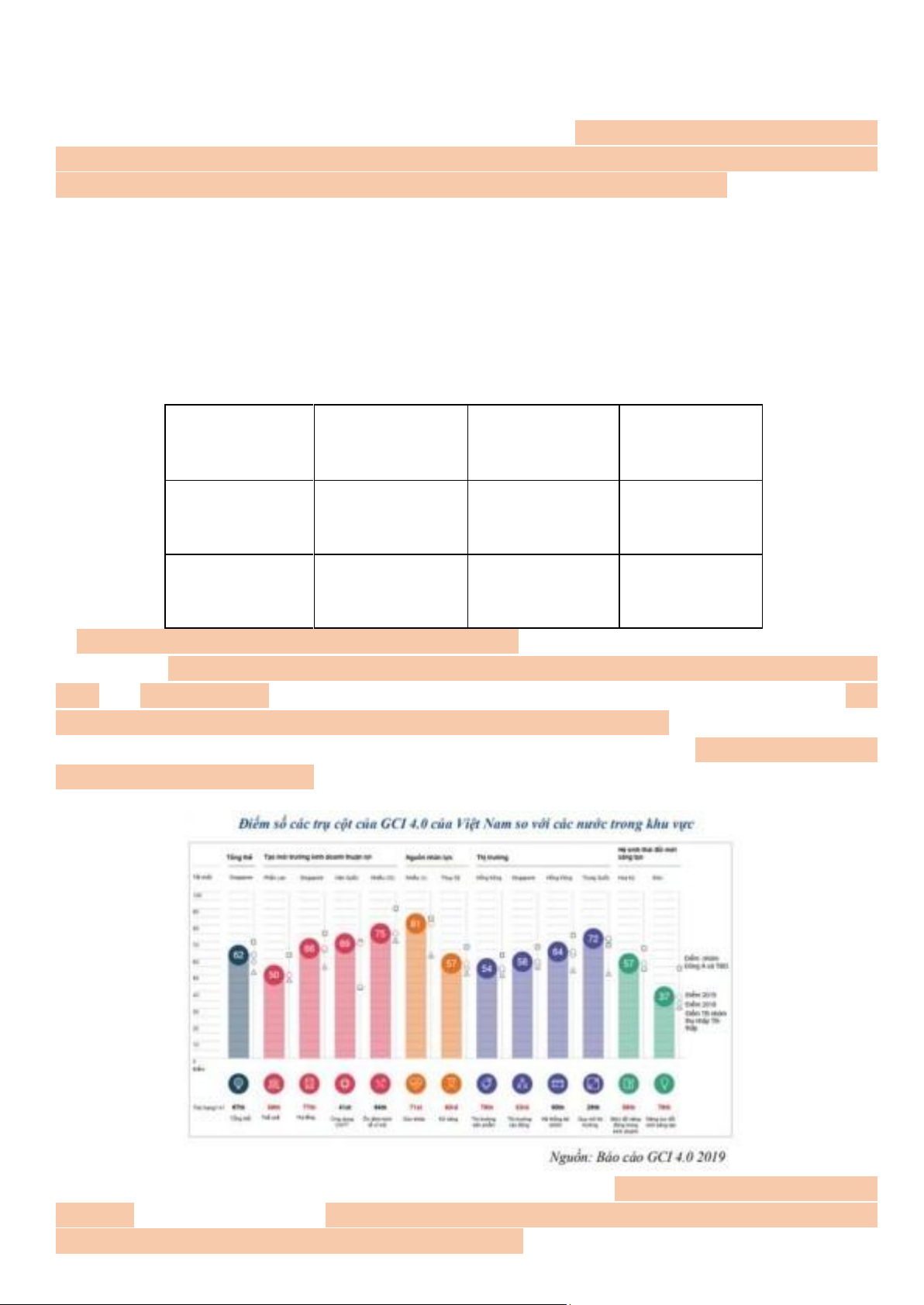 yếu tố cơ sở hạ tầng, năng lực thị trường, lợi thế có liên quan ảnh hưởng trực tiếp hoặc