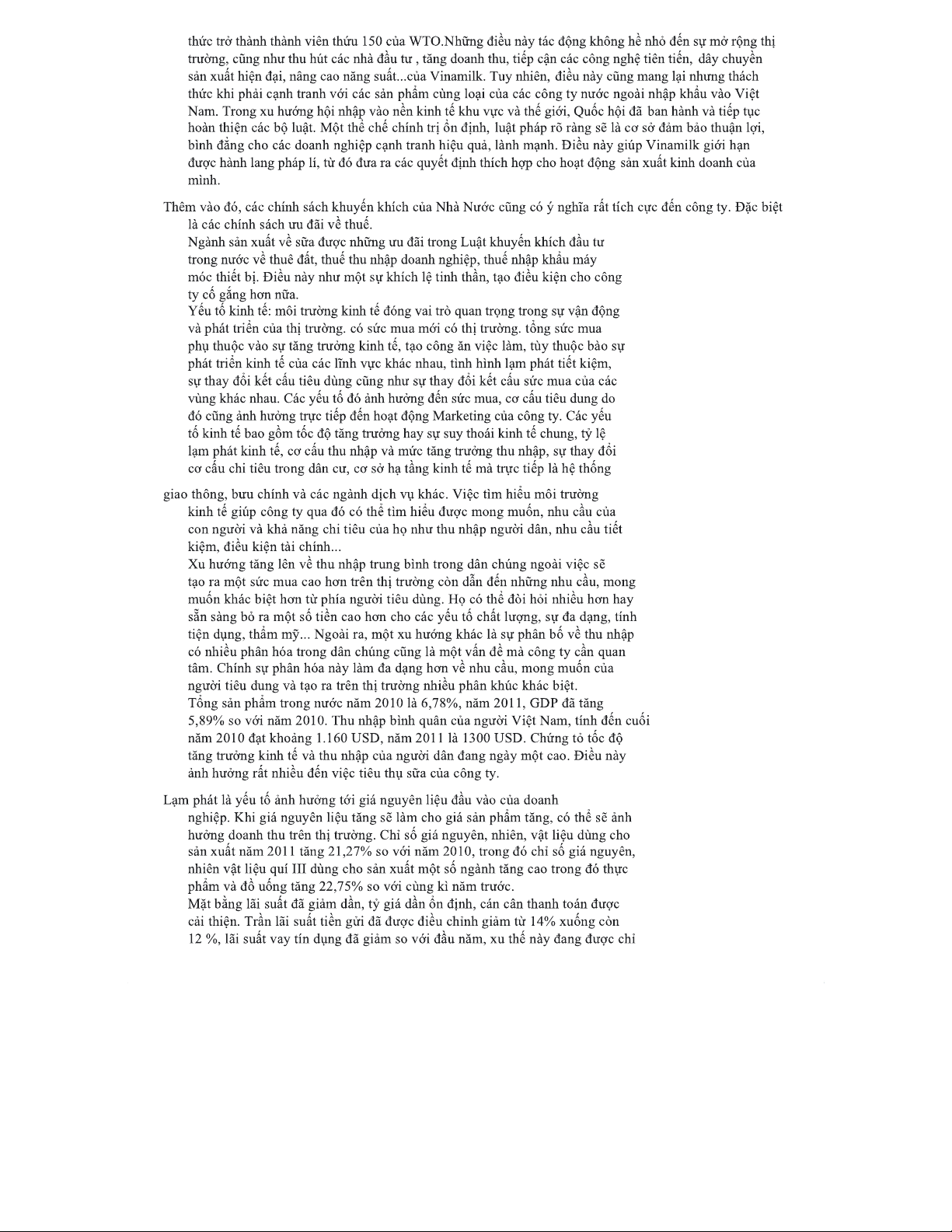 Phân tích môi trường kinh doanh của công ty Vinamilk (BCTC 2011)