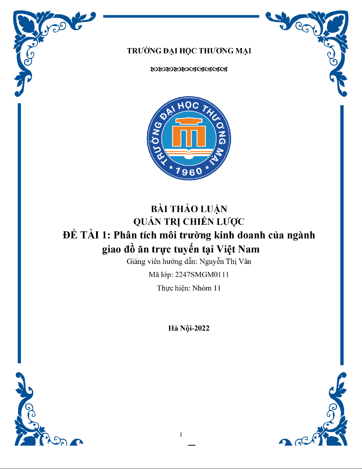 định và khả năng phát triển của ngành giao đồ ăn trực tuyến. Việt Nam là một quốc gia có