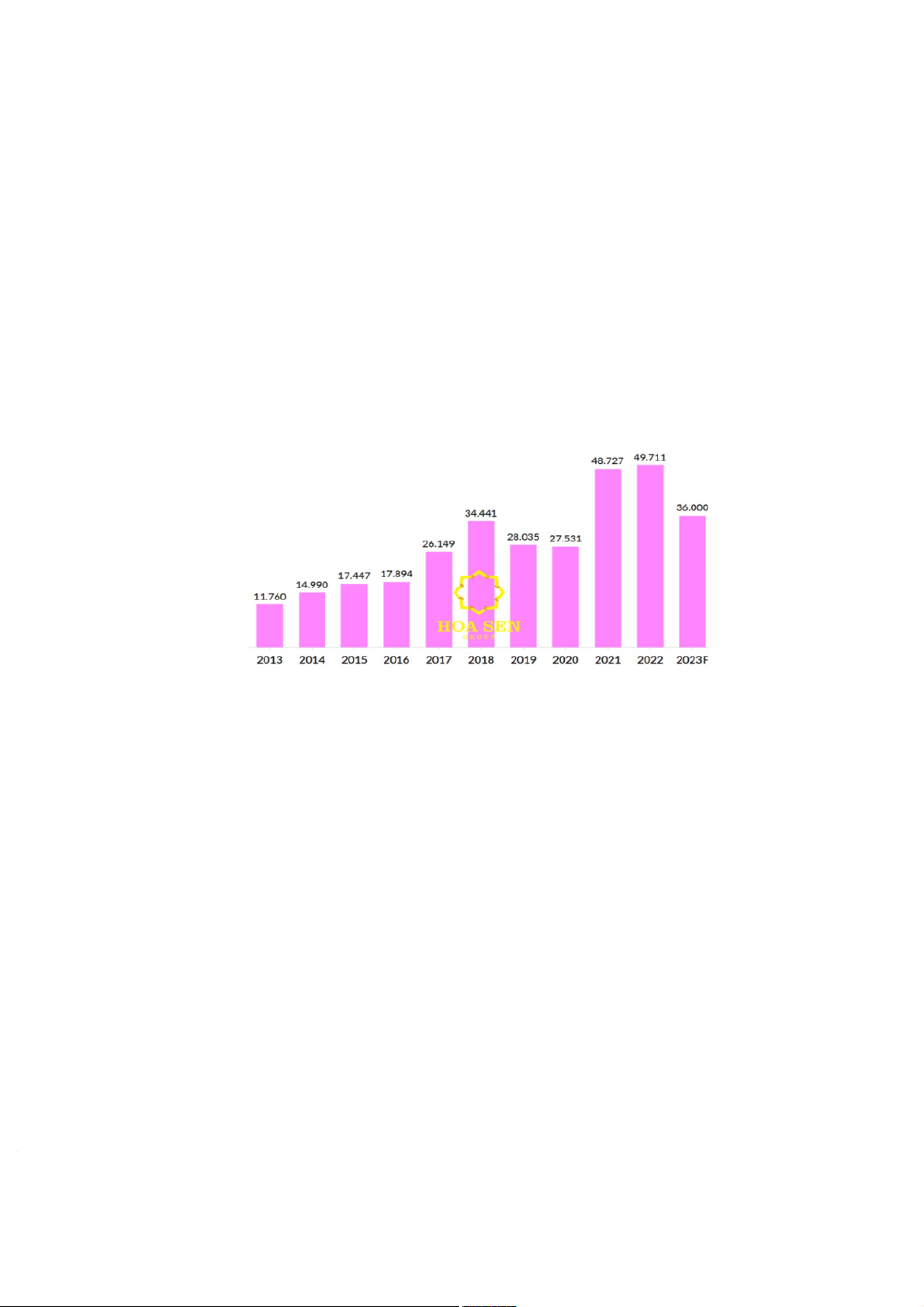 Hình 3: Doanh thu hằng năm của Tập đoàn Hoa Sen (tỷ đồng)