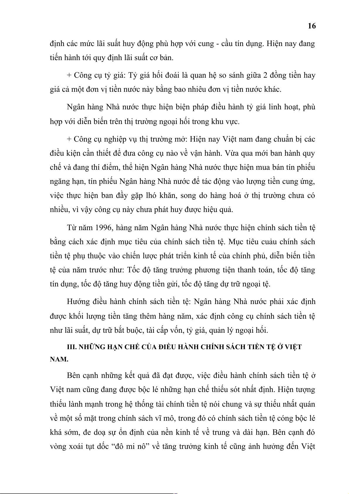 III. NHỮNG HẠN CHẾ CỦA ĐIỀU HÀNH CHÍNH SÁCH TIỀN TỆ Ở VIỆT NAM.