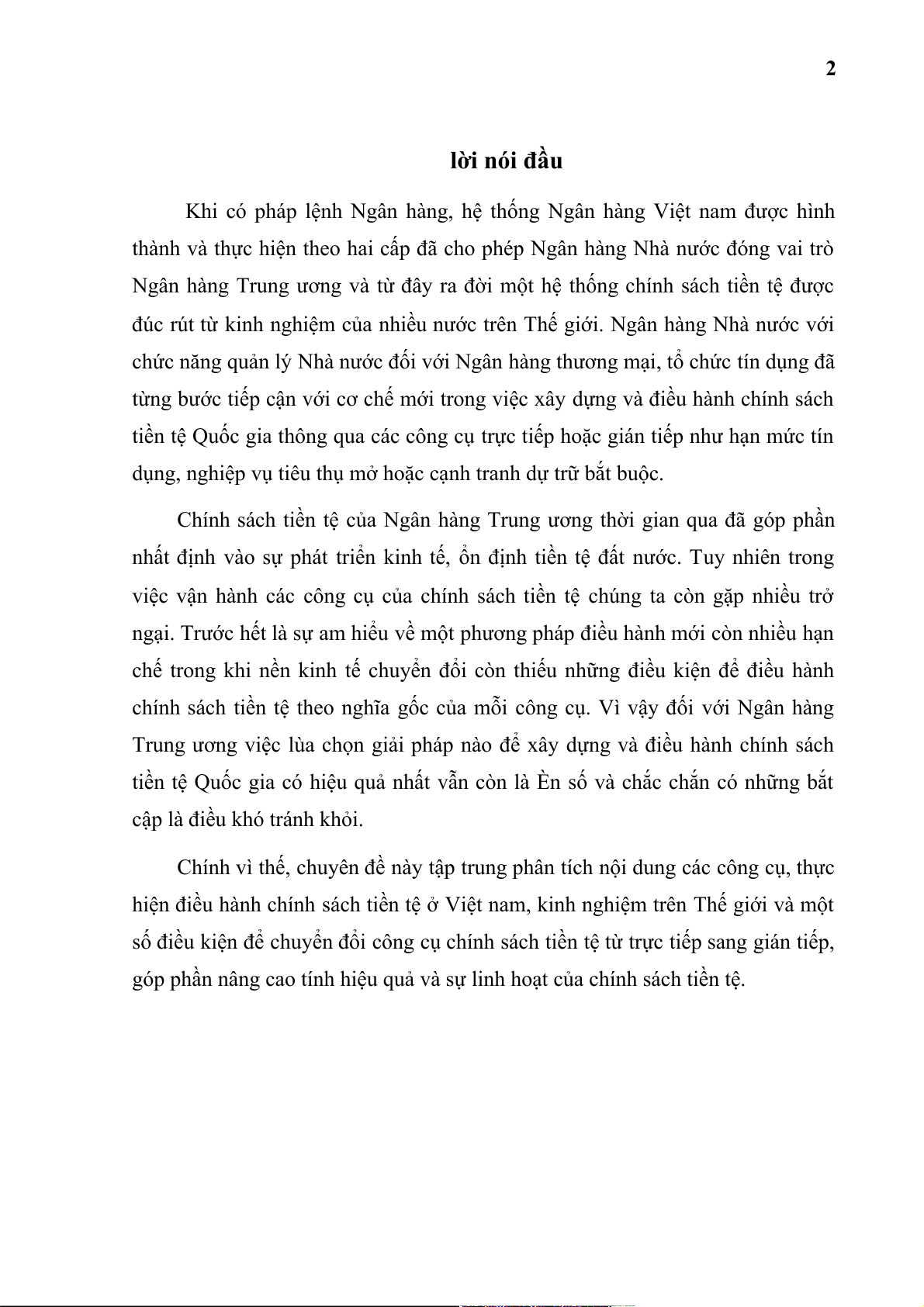 số điều kiện để chuyển đổi công cụ chính sách tiền tệ từ trực tiếp sang gián tiếp,