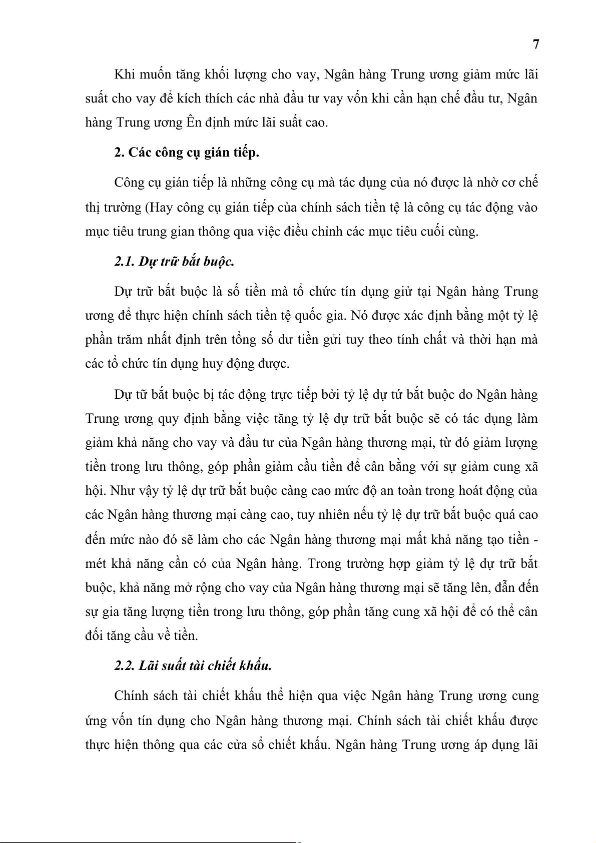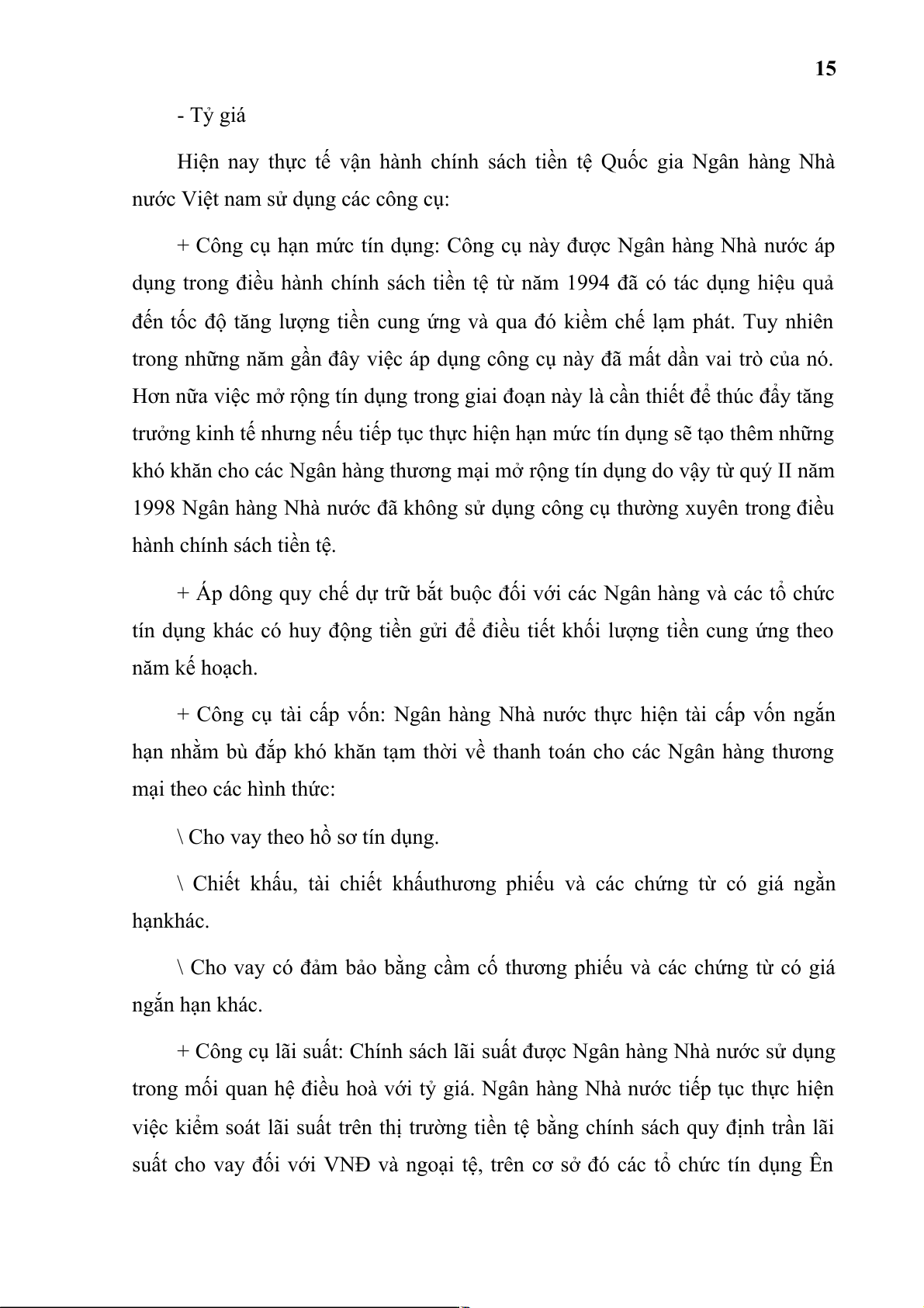 qua hệ thống trần lãi suất cho vay), tỉ giá. Bên cạnh đó các công cụ gián tiếp