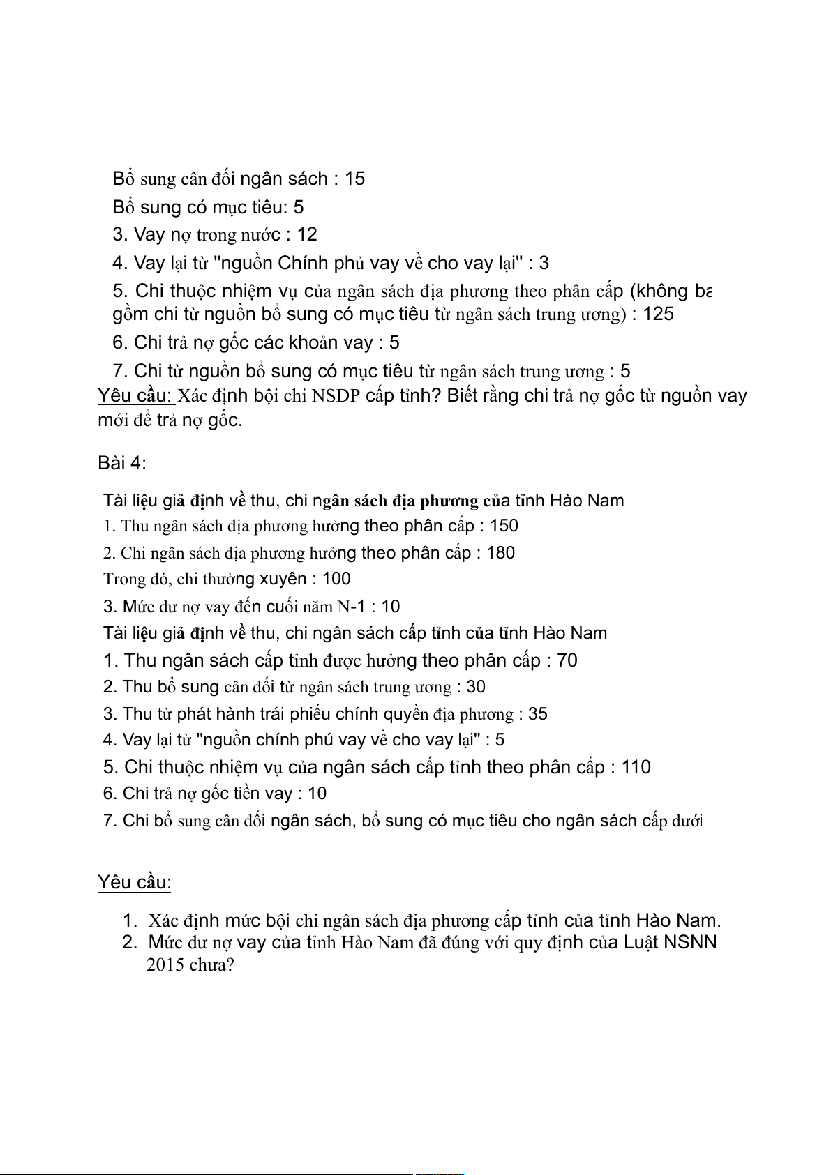 2. Mức dư nợ vay của tỉnh Hào Nam đã đúng với quy định của Luật NSNN 2015 chưa? Bài 5: