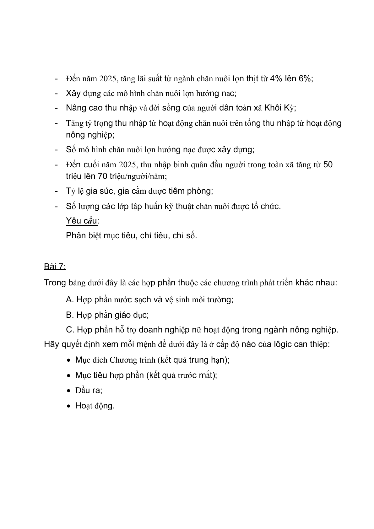 - Số lượng các lớp tập huấn kỹ thuật chăn nuôi được tổ chức. Yêu cầu: