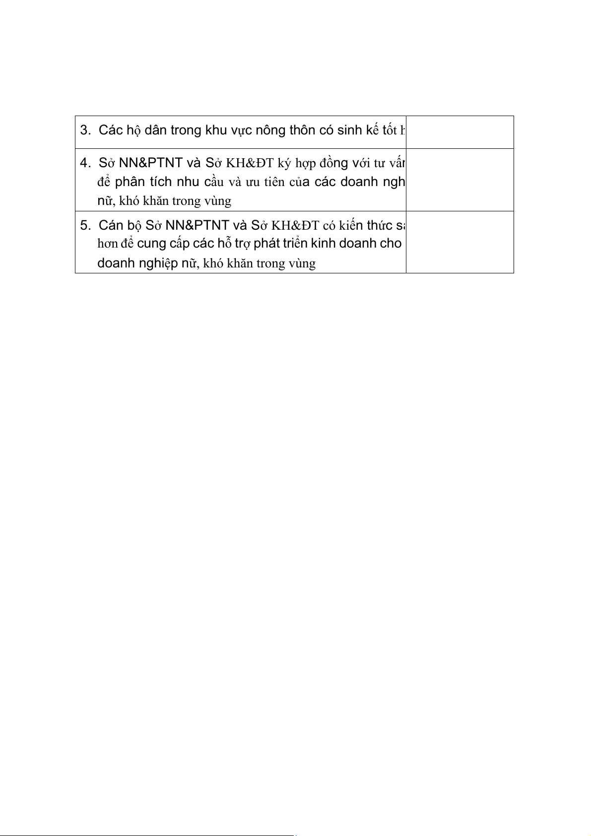 để phân tích nhu cầu và ưu tiên của các doanh ngh nữ, khó khăn trong vùng