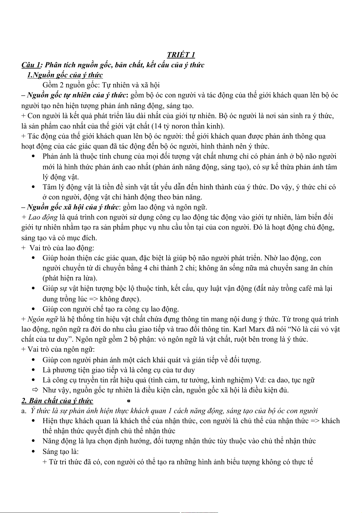 Câu 1: Phân tích nguồn gốc, bản chất, kết cấu của ý thức