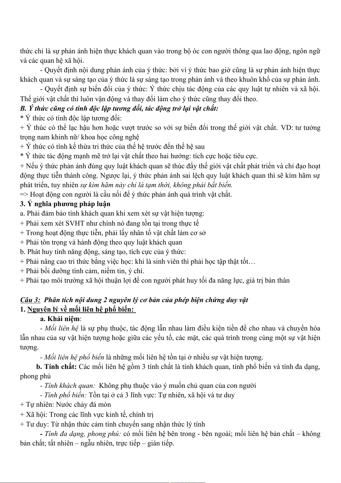 Câu 3: Phân tích nội dung 2 nguyên lý cơ bản của phép biện chứng duy vật