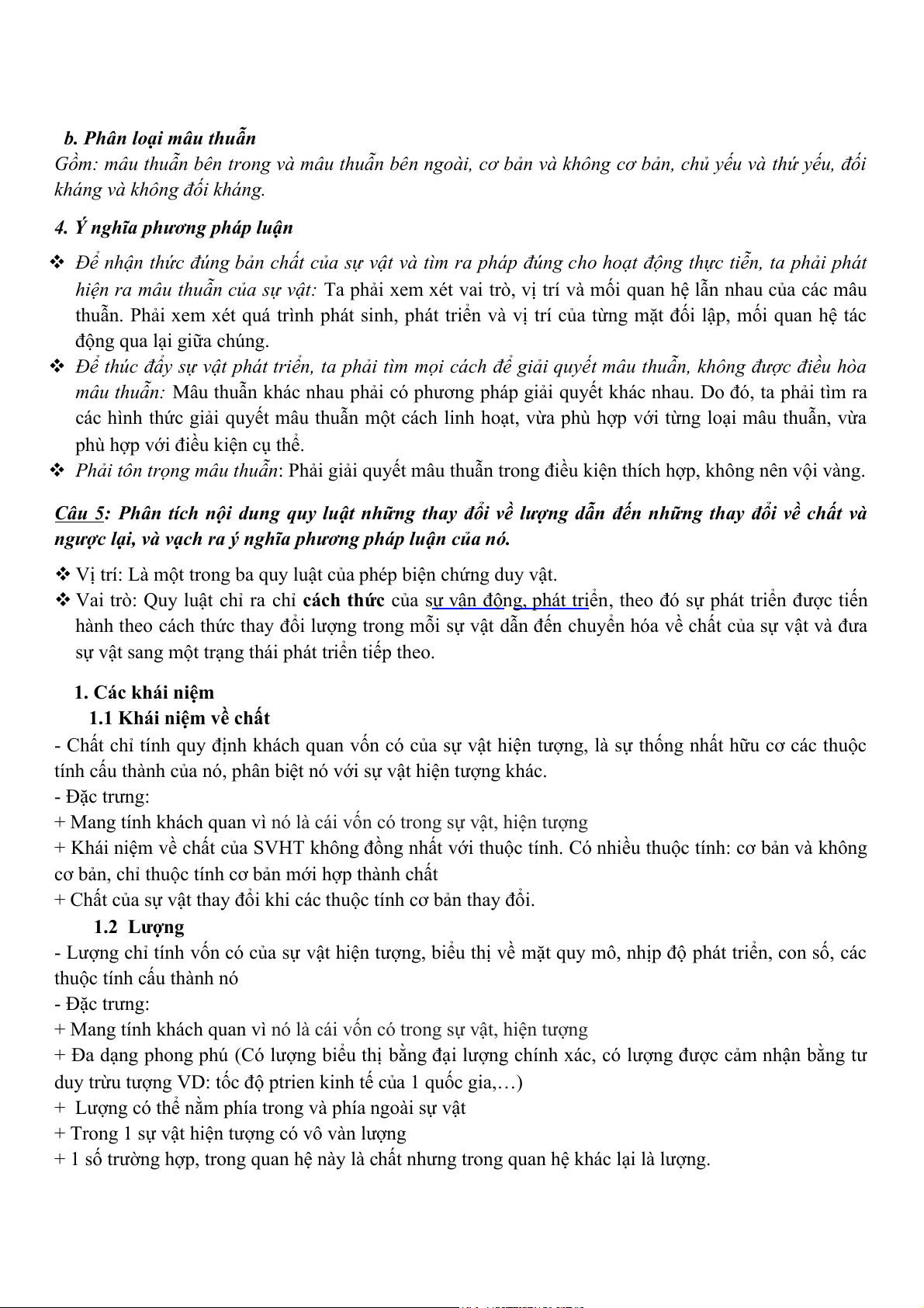 Câu 4: Phân tích nội dung quy luật thống nhất và đấu tranh của các mặt đối lập và vạch ra ý nghĩa