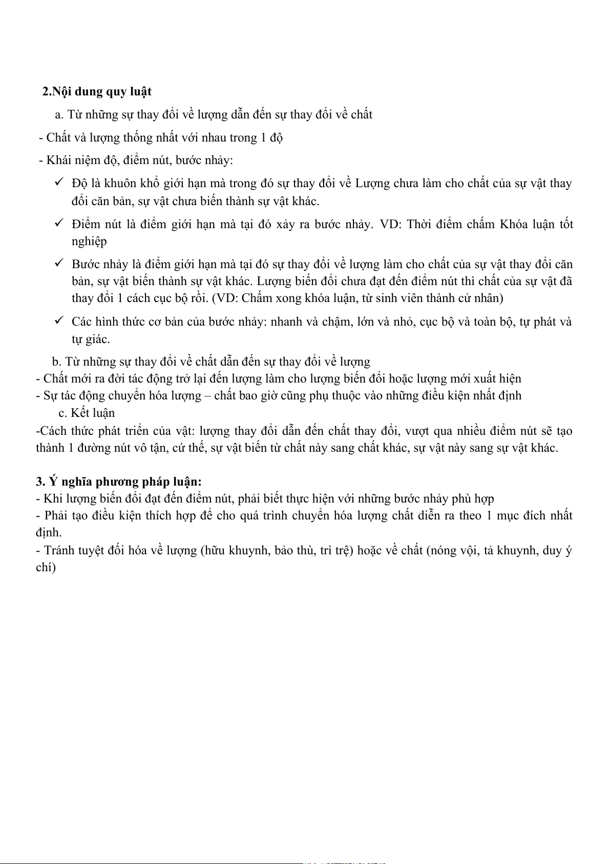 bản, sự vật biến thành sự vật khác. Lượng biến đổi chưa đạt đến điểm nút thì chất của sự vật đã