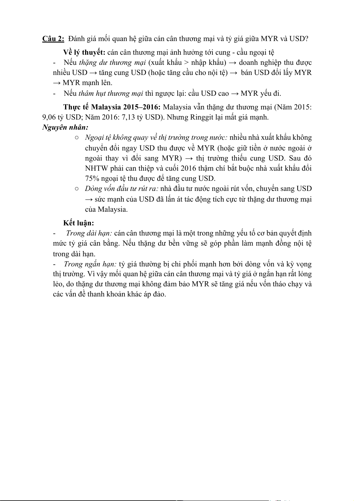 → sức mạnh của USD đã lấn át tác động tích cực từ thặng dư thương mại của Malaysia. Kết luận: