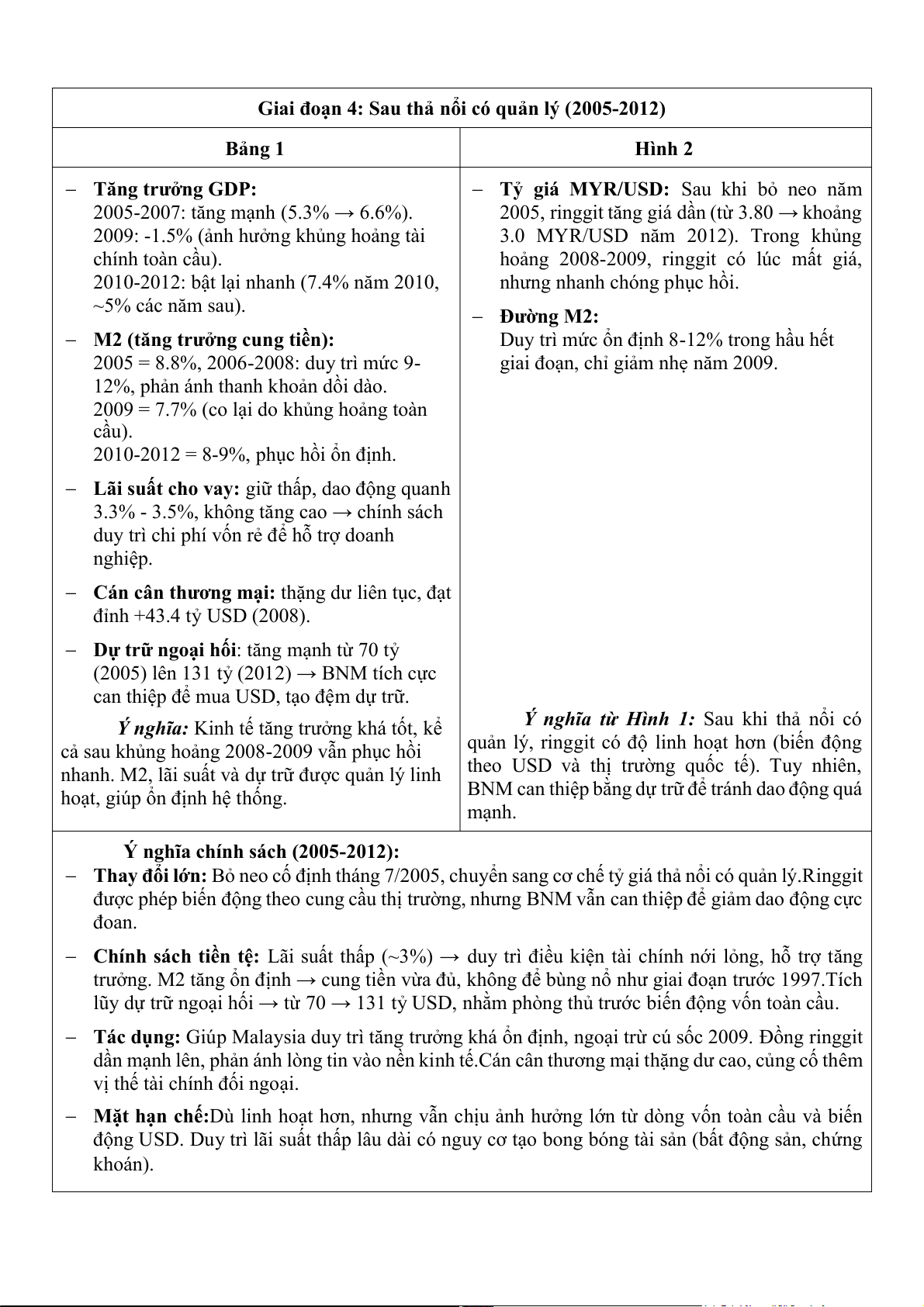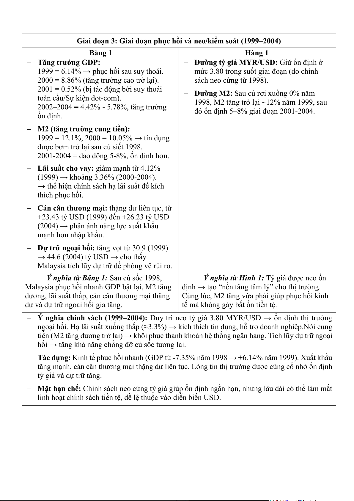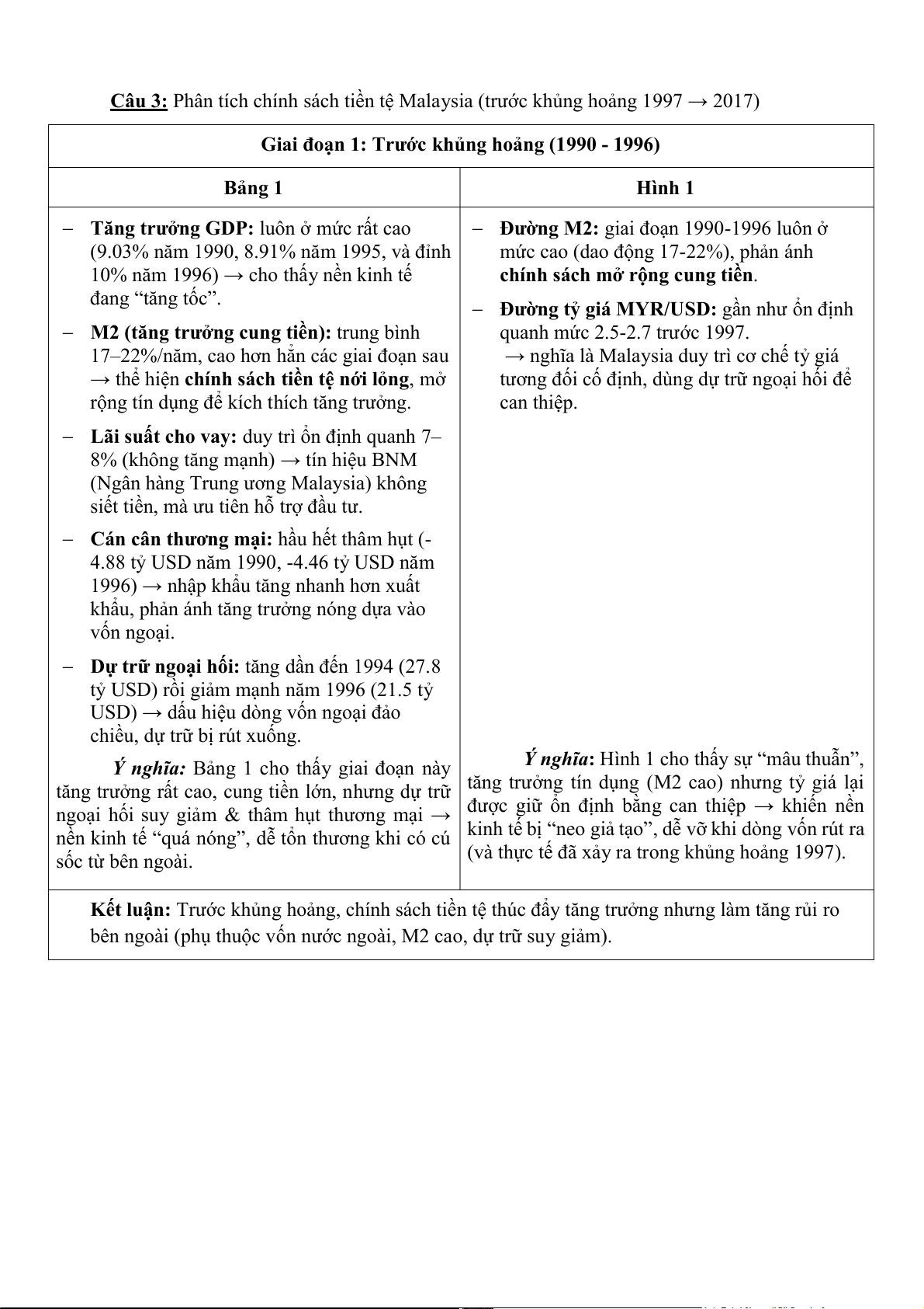 Câu 3: Phân tích chính sách tiền tệ Malaysia (trước khủng hoảng 1997 → 2017)