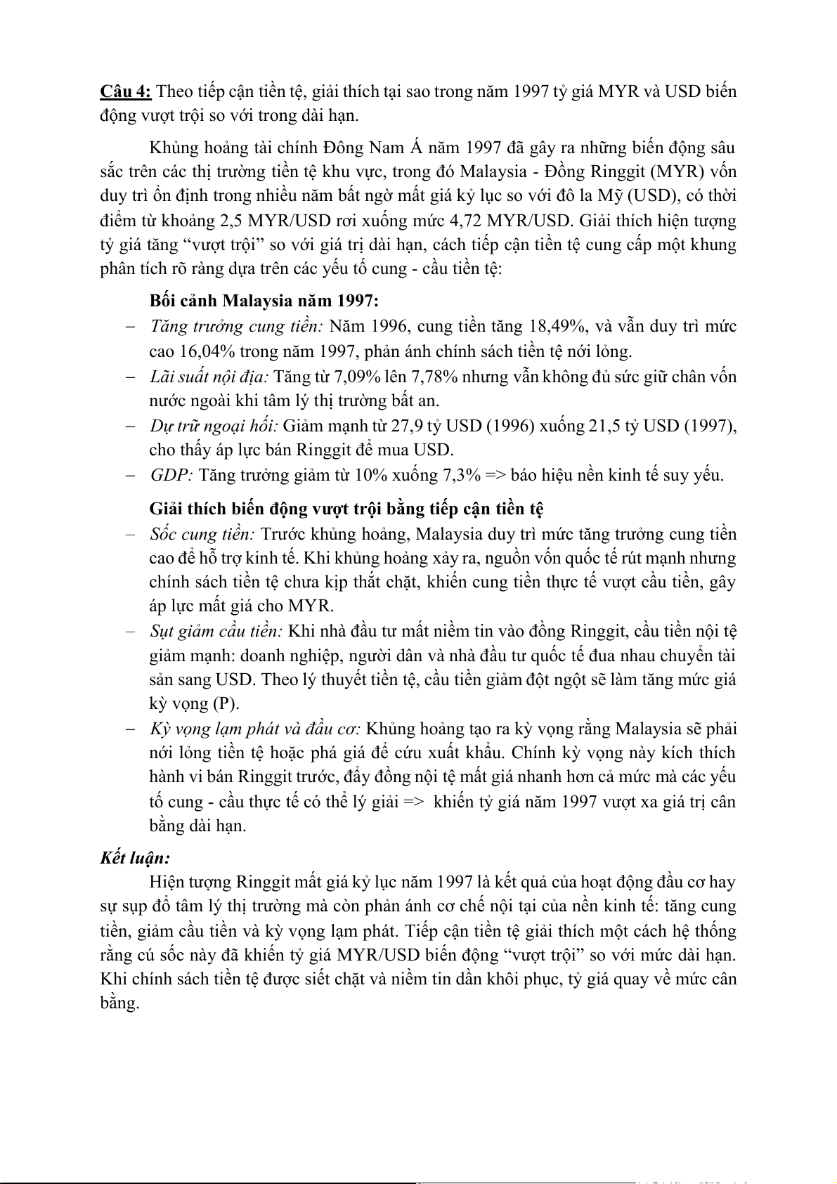 Câu 4: Theo tiếp cận tiền tệ, giải thích tại sao trong năm 1997 tỷ giá MYR và USD biến