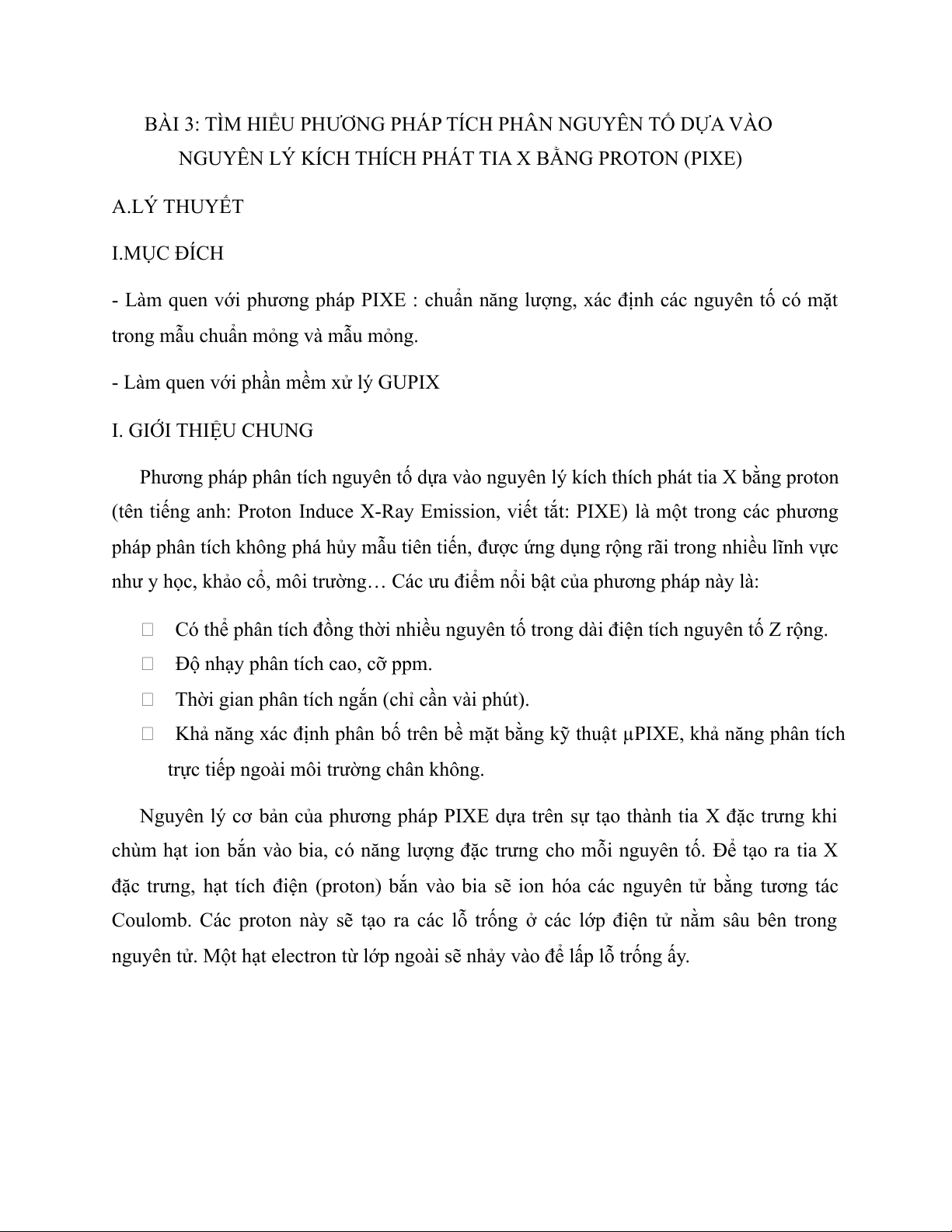 NGUYÊN LÝ KÍCH THÍCH PHÁT TIA X BẰNG PROTON (PIXE) A.LÝ THUYẾT I.MỤC ĐÍCH