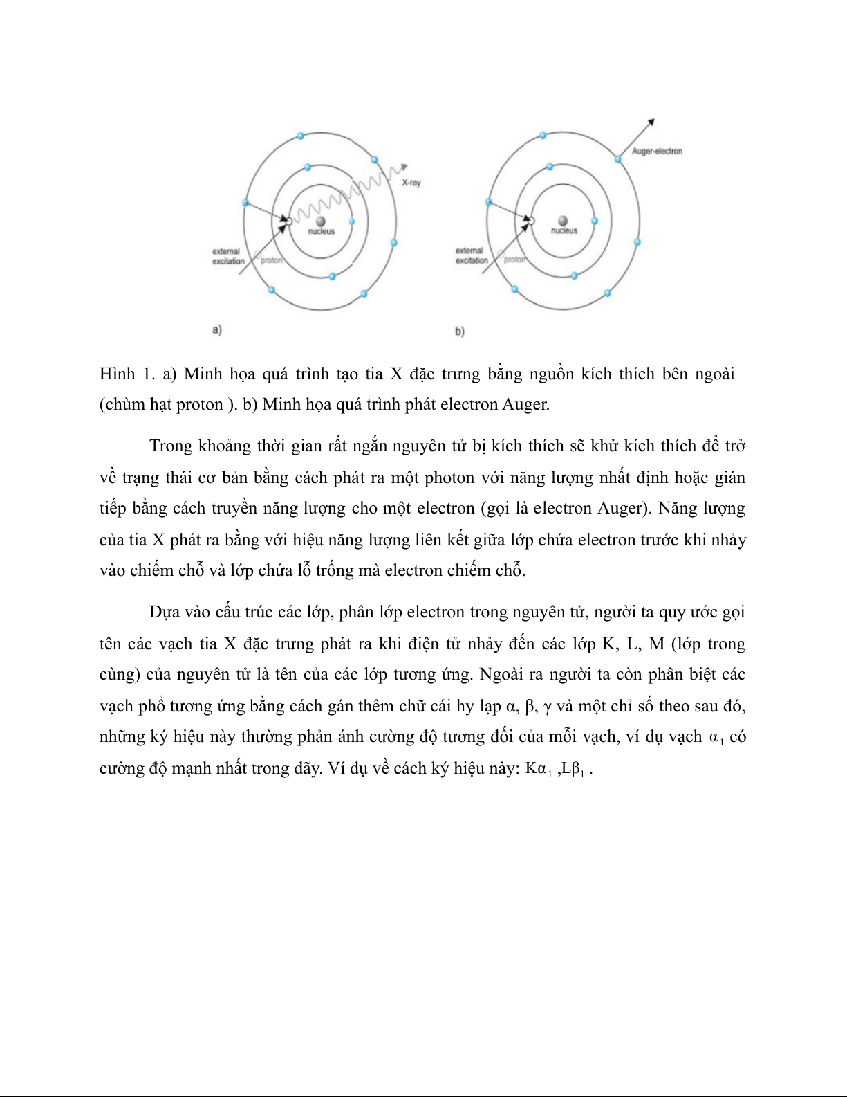 (chùm hạt proton ). b) Minh họa quá trình phát electron Auger.