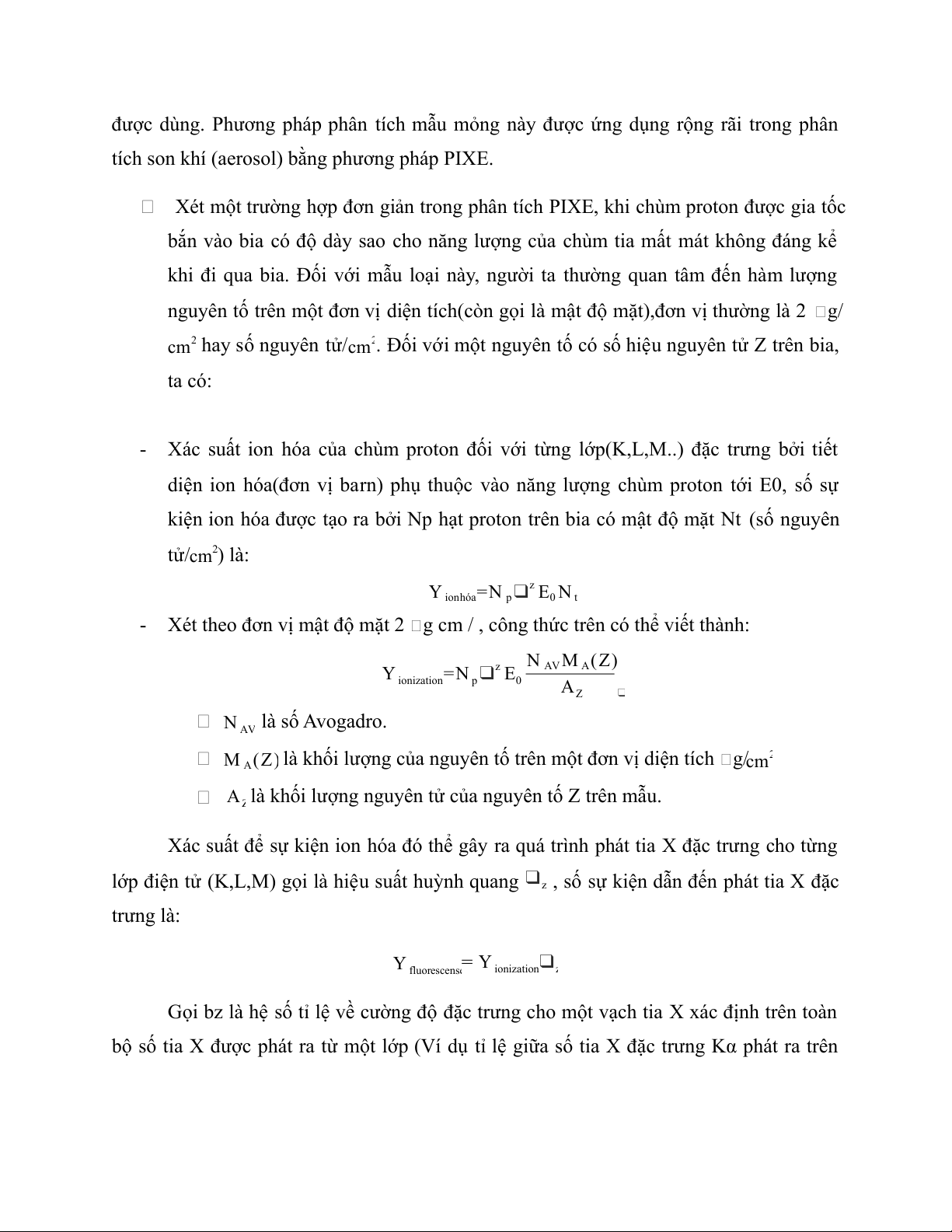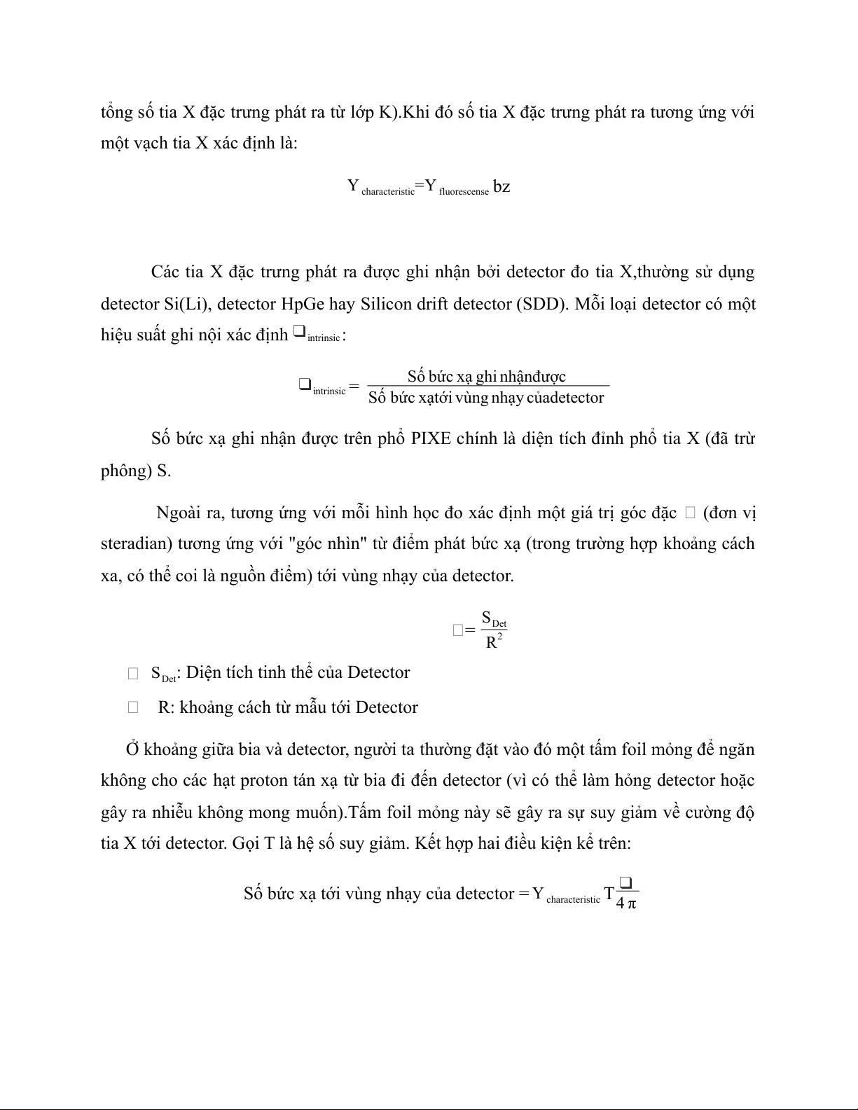 nguyên tố Z trên mẫu mỏng dựa vào diện tích đỉnh phổ tương ứng S như sau: 4 πA SH M (Z )= Z A N ❑z E N ❑ b ❑ T p 0 AV z z intrinsic