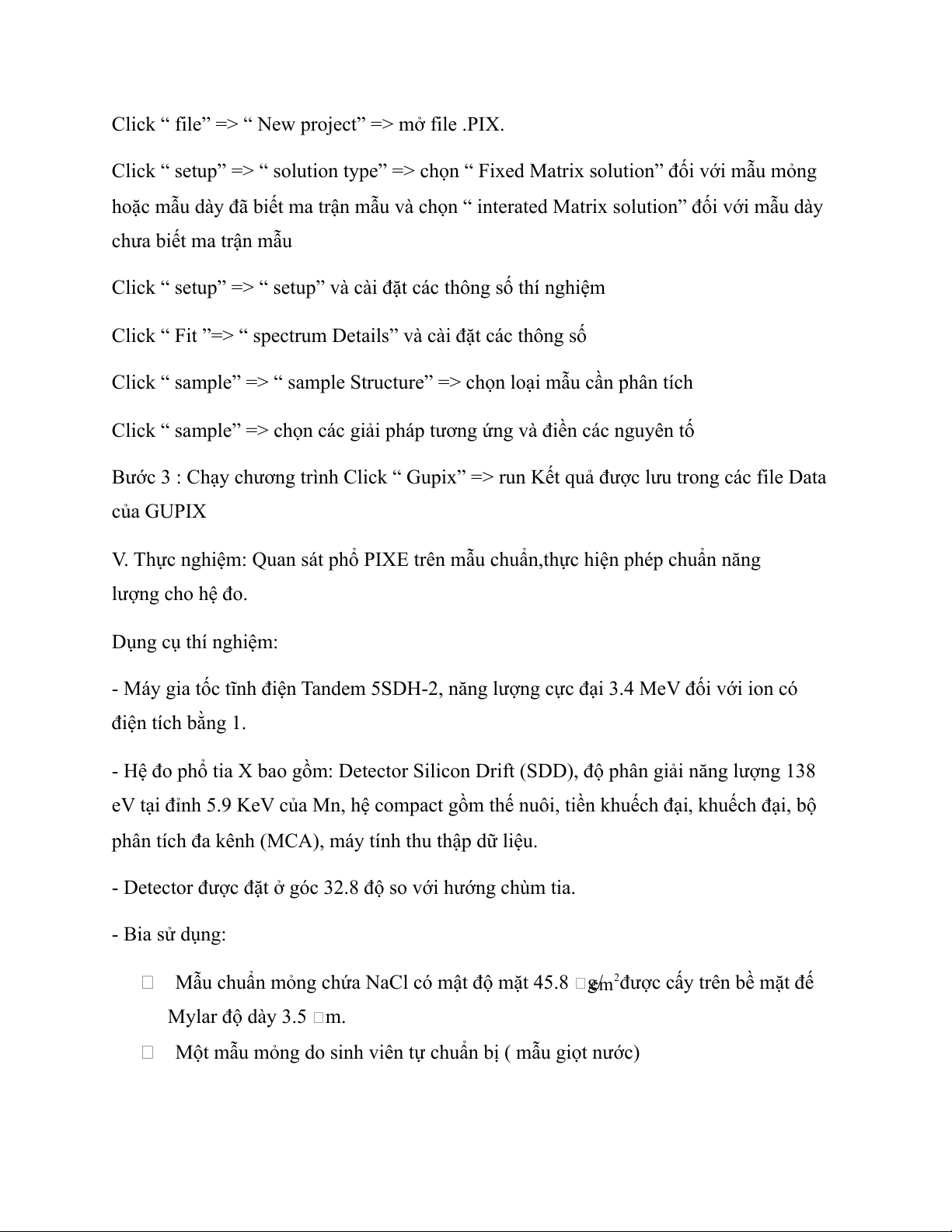 -Sử dụng phần mềm GUPIX để phân tích hàm lượng nguyên tố trong mẫu mỏng: