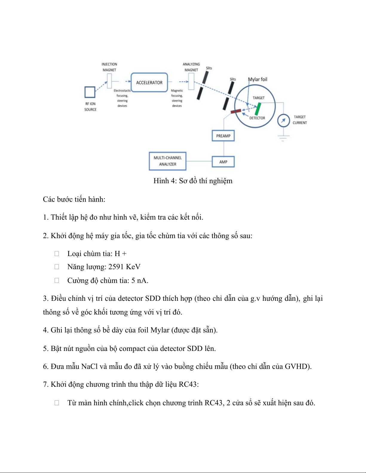 V. Thực nghiệm: Quan sát phổ PIXE trên mẫu chuẩn,thực hiện phép chuẩn năng lượng cho hệ đo. Dụng cụ thí nghiệm:
