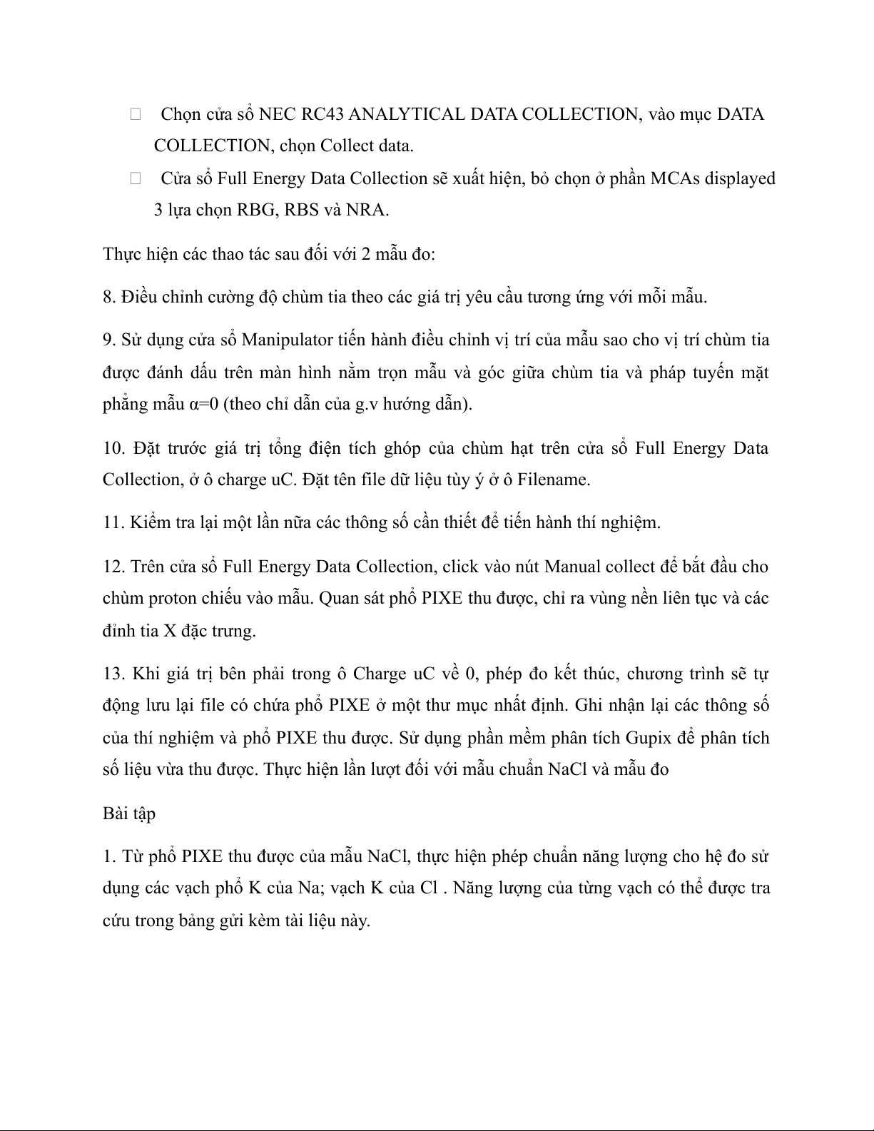 số liệu vừa thu được. Thực hiện lần lượt đối với mẫu chuẩn NaCl và mẫu đo Bài tập