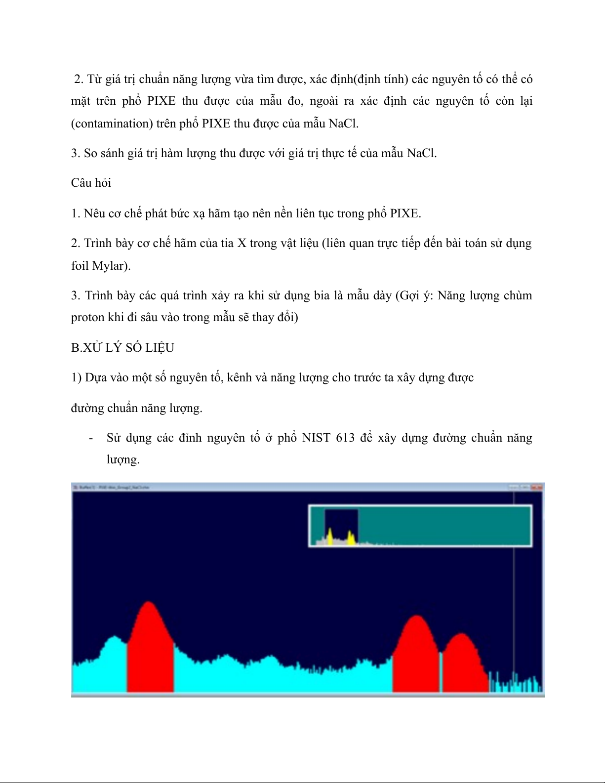 1. Từ phổ PIXE thu được của mẫu NaCl, thực hiện phép chuẩn năng lượng cho hệ đo sử