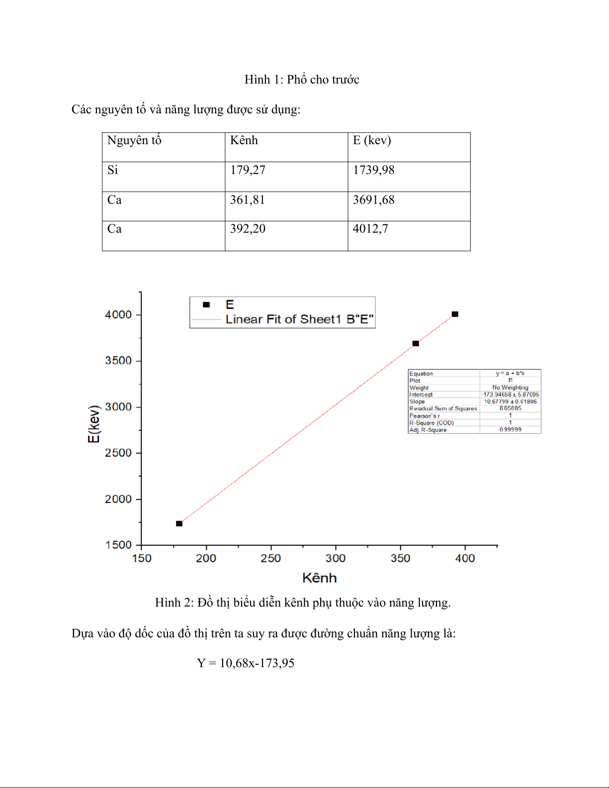 Dựa vào độ dốc của đồ thị trên ta suy ra được đường chuẩn năng lượng là: Y = 10,68x-173,95