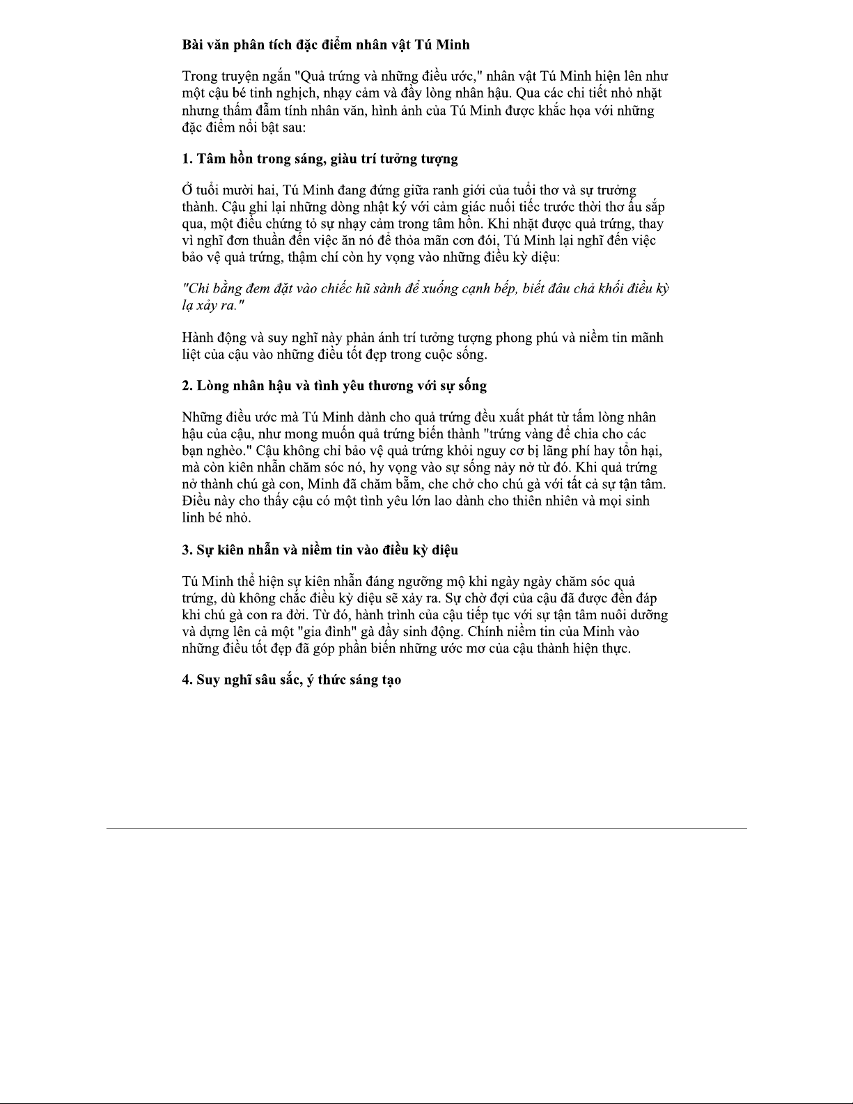 PHÂN TÍCH NHÂN VẬT TÚ MINH TRONG QUẢ TRỨNG VÀNG - BÀI VĂN ANALYSIS