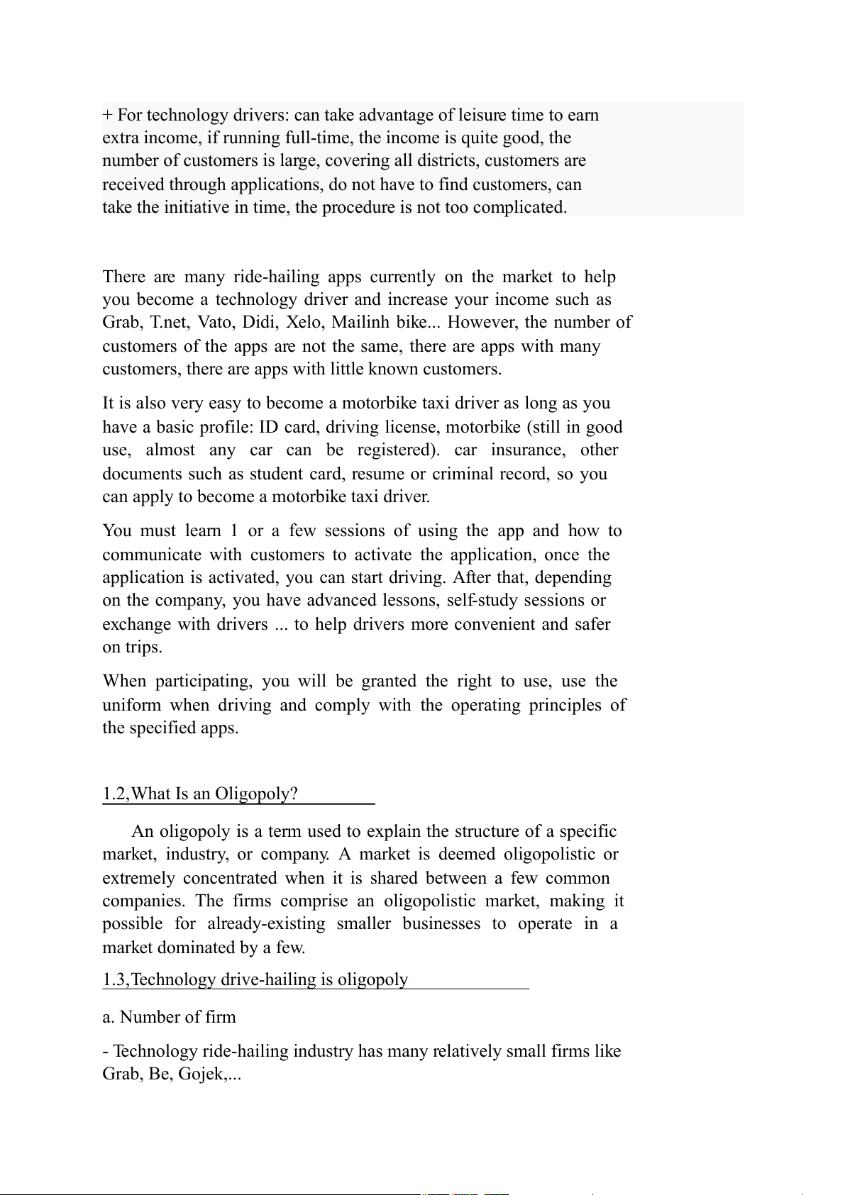 - Technology ride-hailing industry has many relatively small firms like Grab, Be, Gojek,...