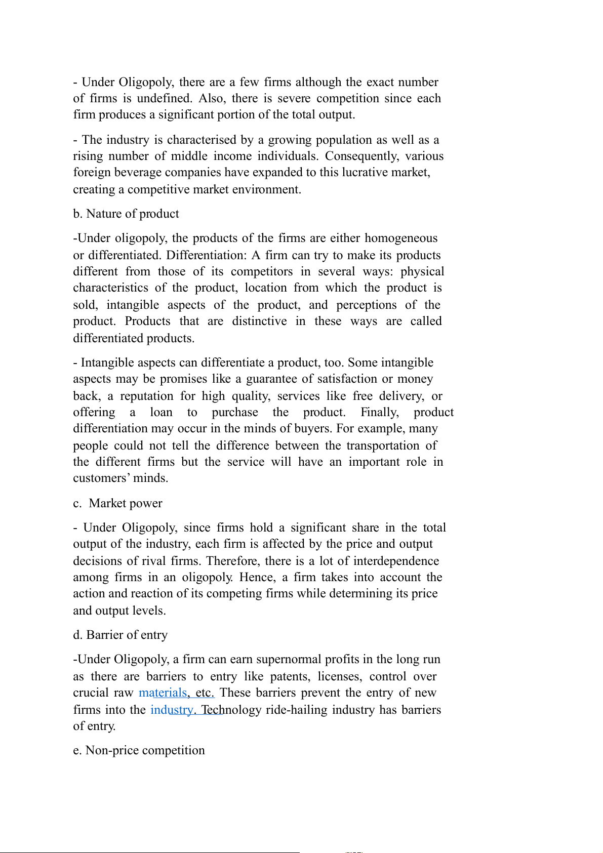 firms into the industry. Technology ride-hailing industry has barriers of entry. e. Non-price competition