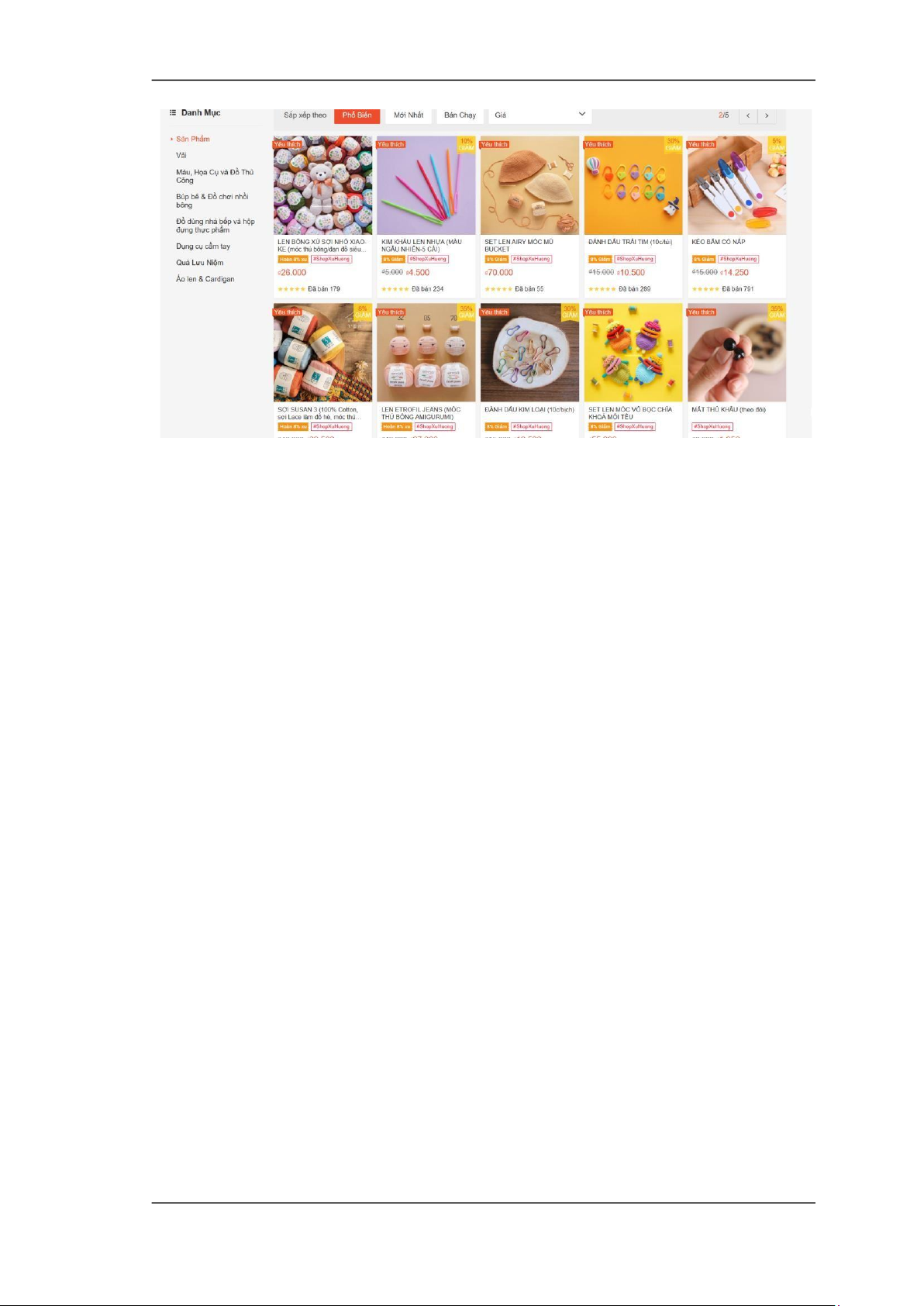Hình 3. Danh mục sản phẩm phổ biến trên sàn Shopee