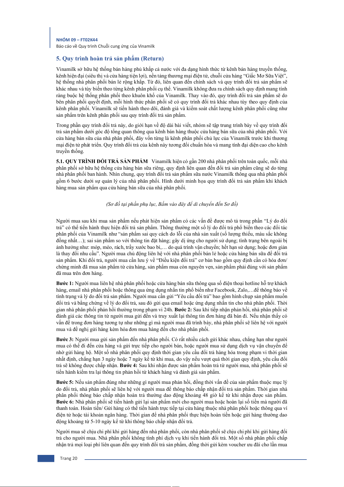 sữa nước, hệ thống vận chuyển và nhà kho, và quy trình hoàn trả sản phẩm. Mỗi giai đoạn sẽ được phân tích